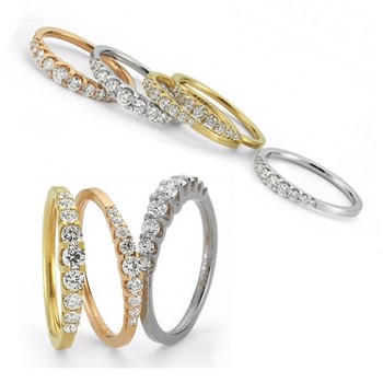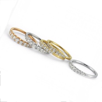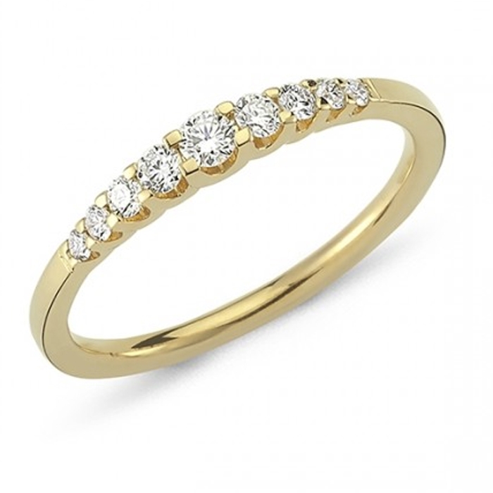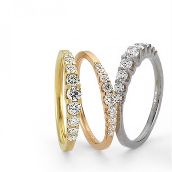 Red Gold Alliance -ringer fra Nuran med 9 diamanter i banen, kan leveres med totalt 0,24 ct - 0,43 ct - 0,50 ct 0,75 ct og 1,00 ct Wesselton / SI. Disse allianseringene fra Nuran Empire -serie, der de ser fra siden at de glitrende diamantene flyter, kan leveres i rødt gull, hvitt gull og gull.