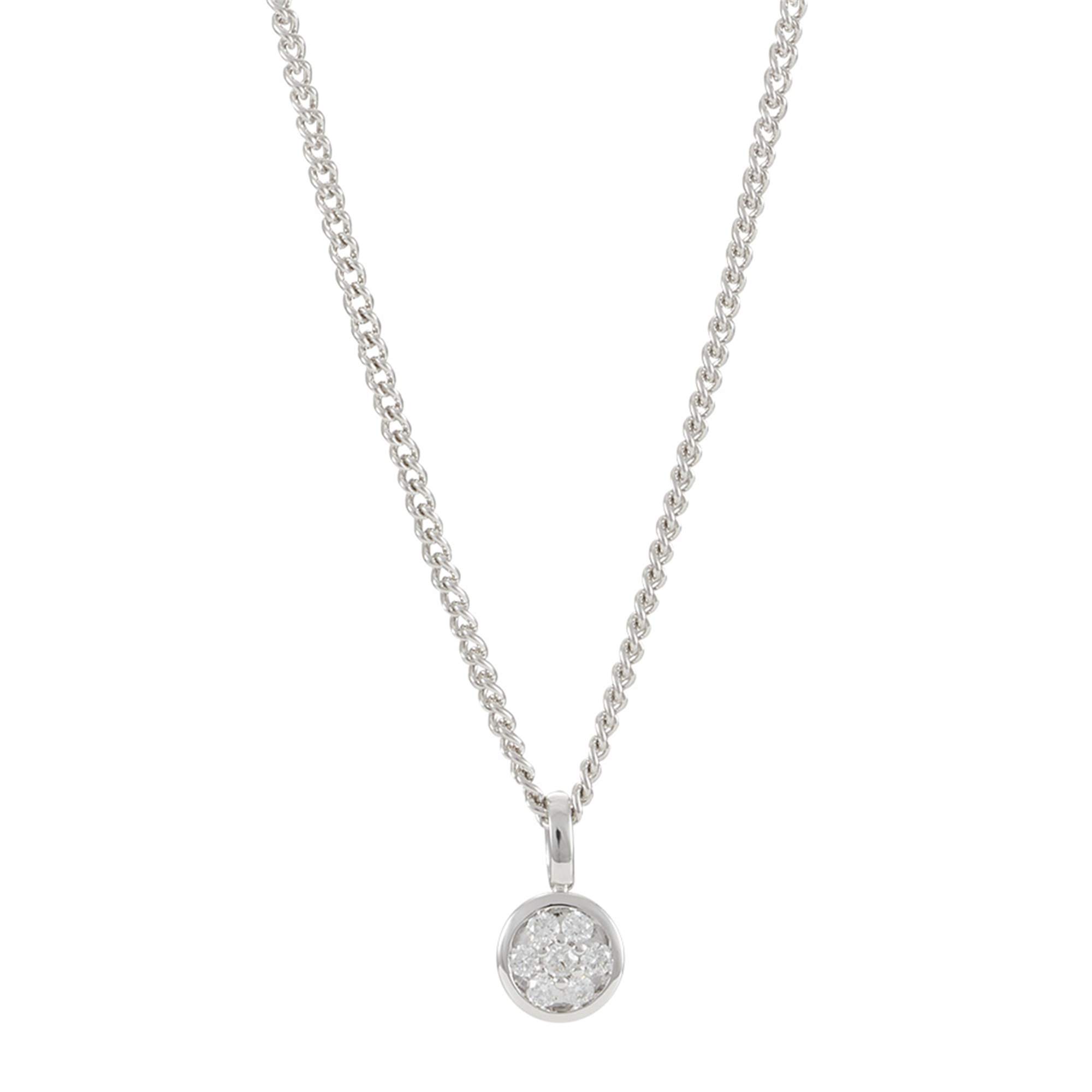 14 kt. hvg vedh cirkel 0,09ct W/SI m/ sølv kæde, fra Siersbøl