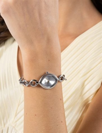 En feminin klokke med stilrent design og fine detaljer.