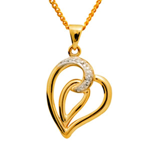 Lovely heart inside a heart, in 9 ct. yellow gold, with a dash of Diamonds.