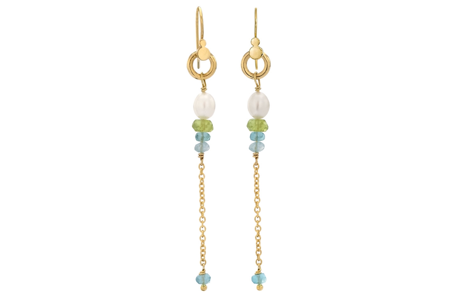 Hvide ferskvandsperler, peridot, apatit, aquamarin