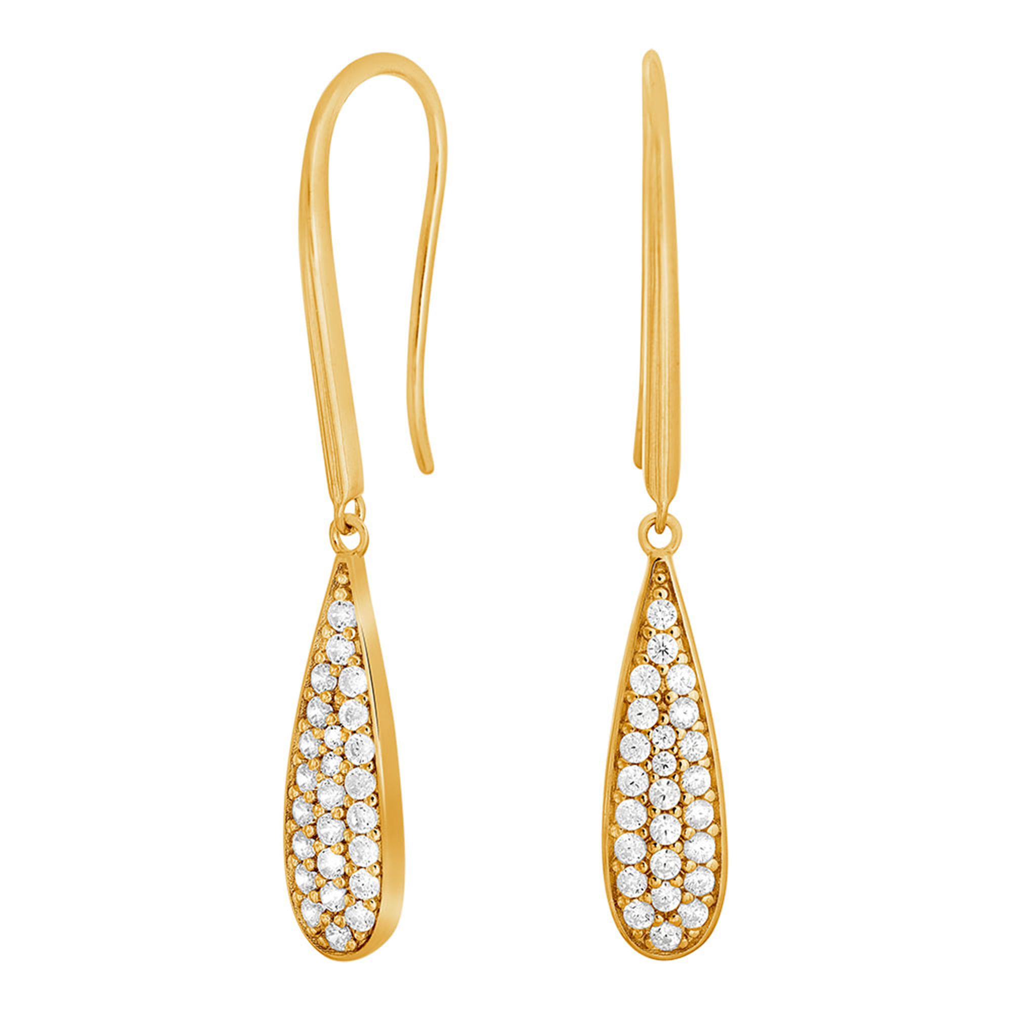 Elegante og stilsikre dråbe ørehængere. De forgyldte sølvørehængerne fra vores DeaNor serie er elegante i deres enkelthed og et sikkert hit til den stilbevidste kvinde. Selve bøjlen har en flot fylde, der giver smykket en luksuriøs helhed, mens d