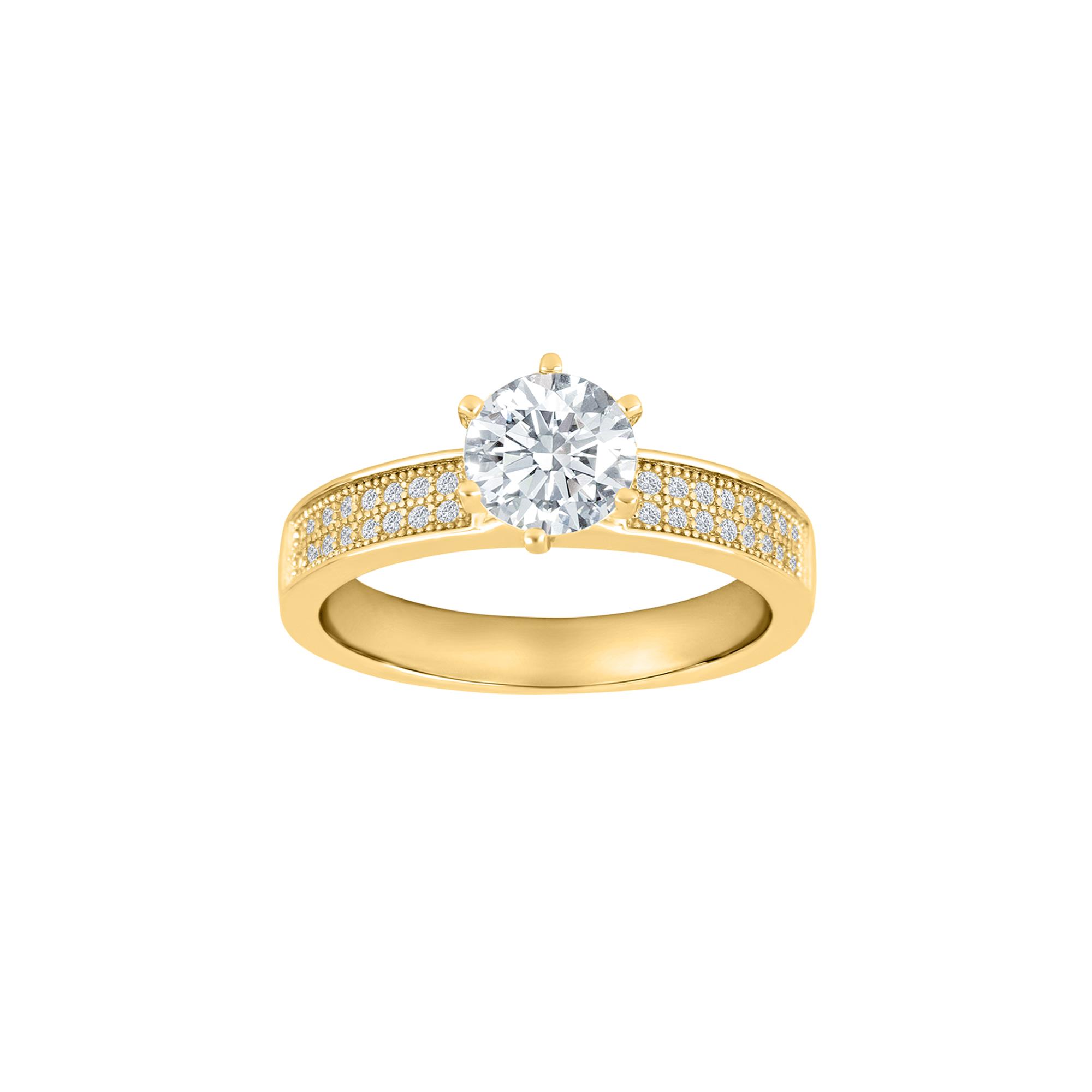 Dette er ringen man med glæde viser frem. Den store, flotte sten er forførende for blikket og bliver suppleret godt af de to rækker med sten, der er som smeltet ind i ringen. Ringen er med sit feminine udtryk et godt b
