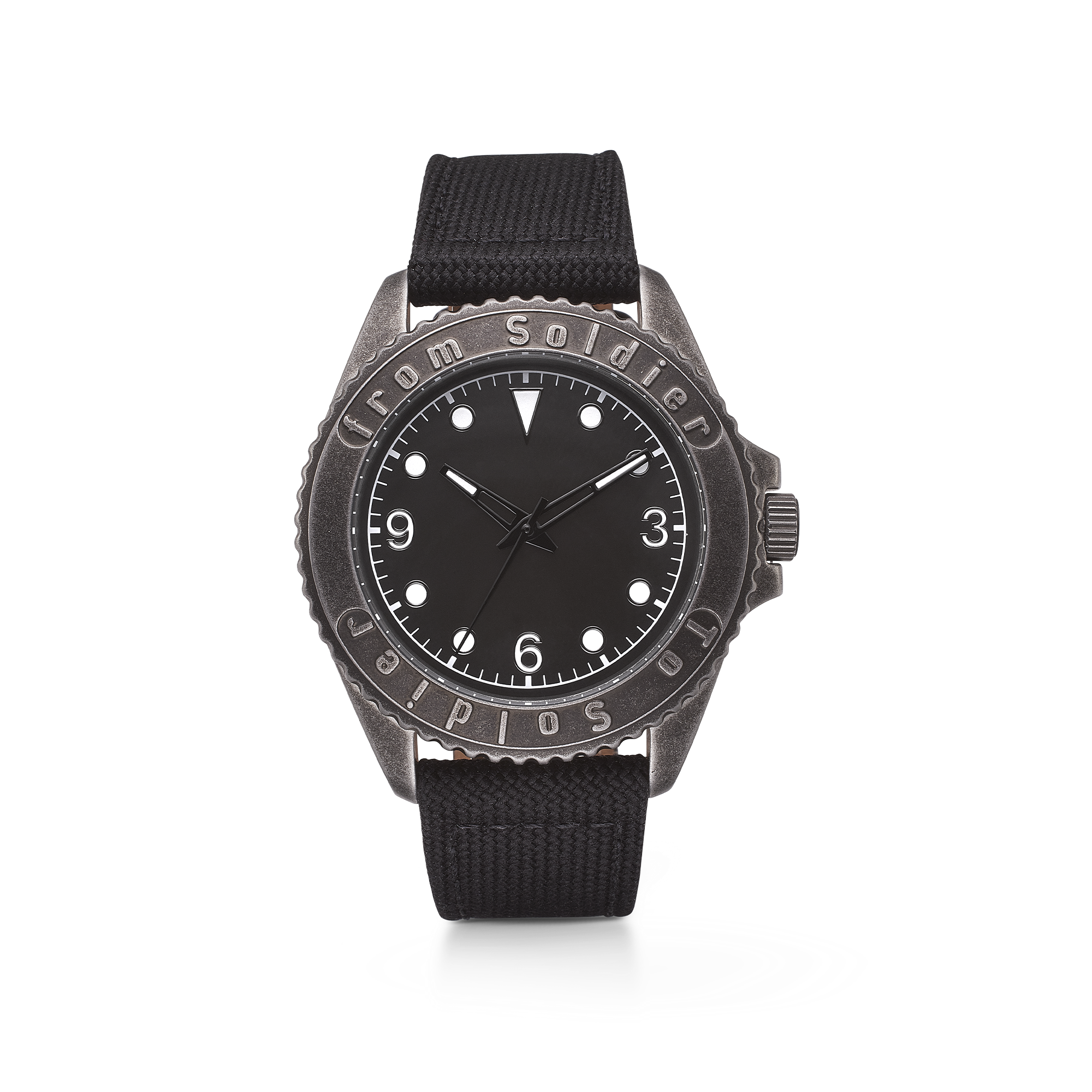 FSTS SORT STÅL UR M/SORT CANVAS REM, fra Aagaard