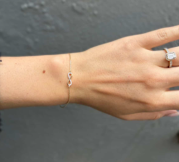 8 kt. guld armbånd evighedstegn med syntetiske cubic zirconia. "Infinity"