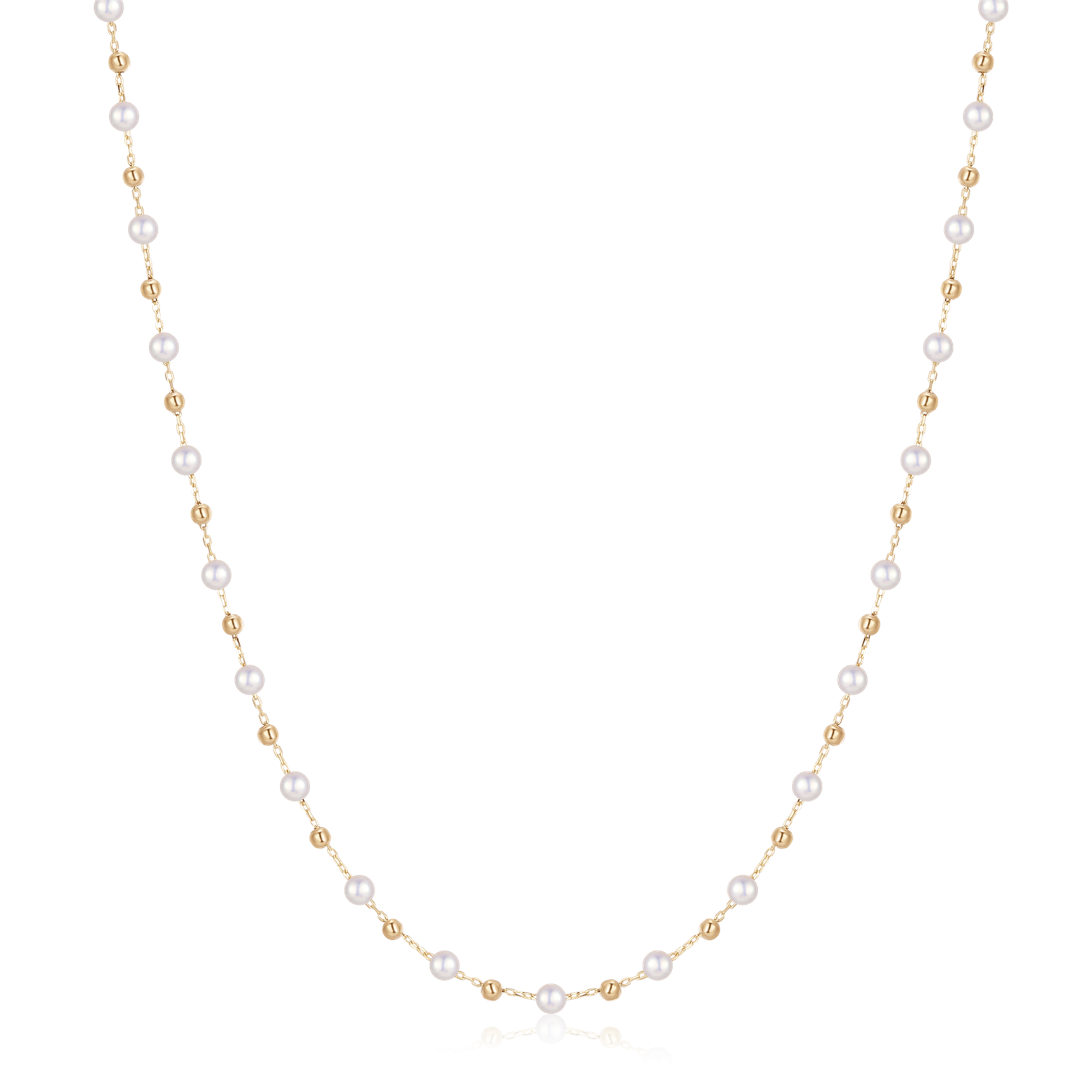 8 kt. guld collier ferskvandsperler skiftevis med kugle.