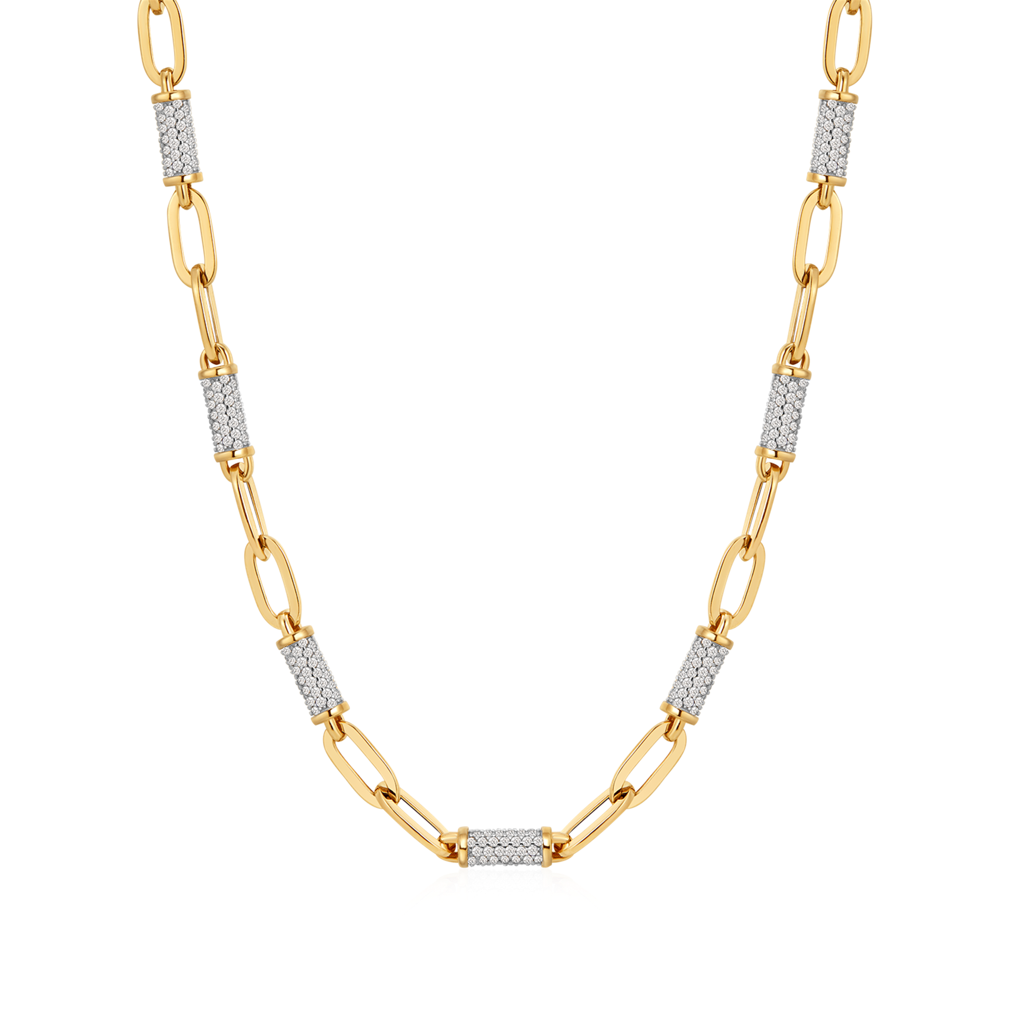 8 kt. guld collier oval led med rør med syntetiske cubic zirconia.