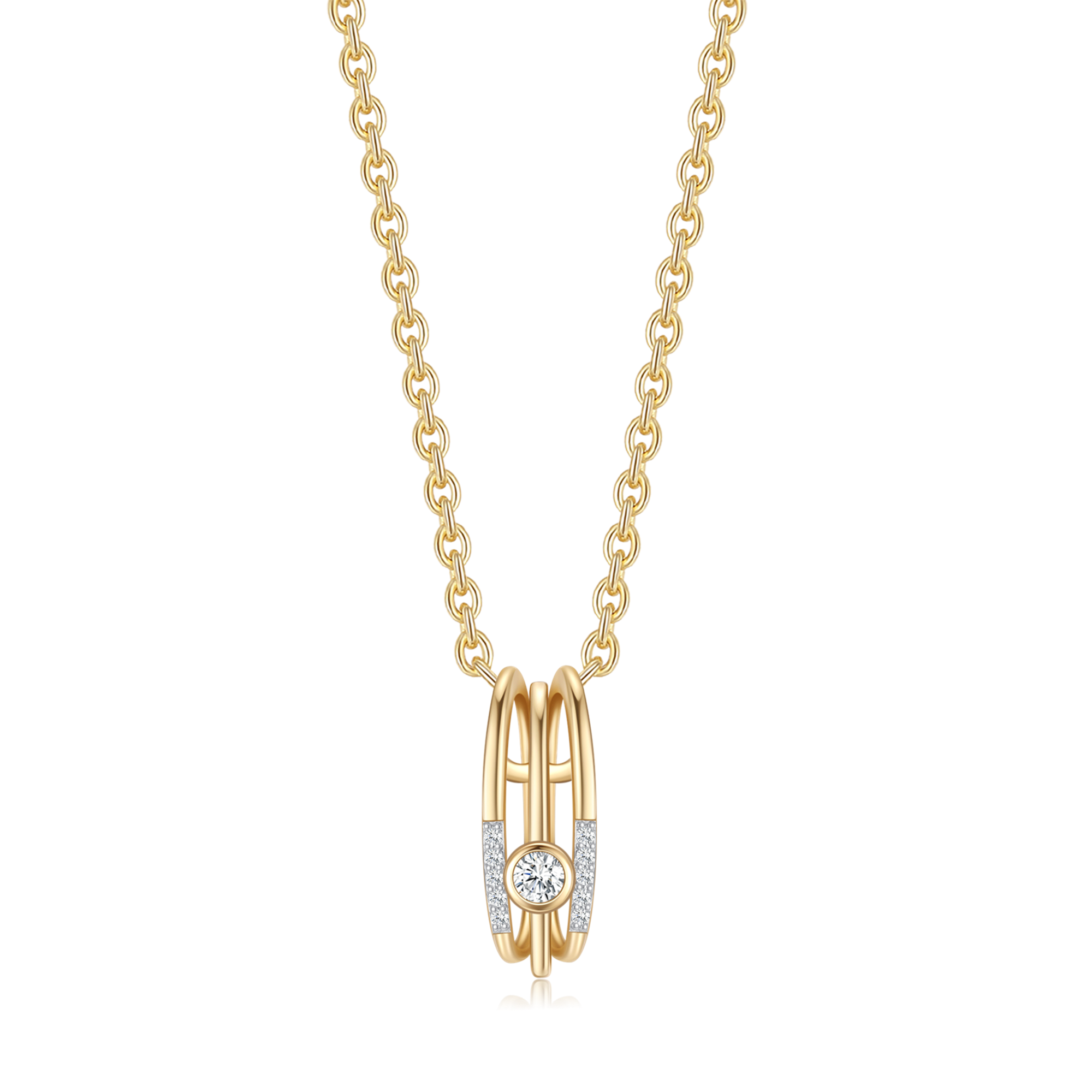 8 kt. guld vedhæng tre streger med en syntetisk cubic zirconia og 5 på hver side af skinnen.