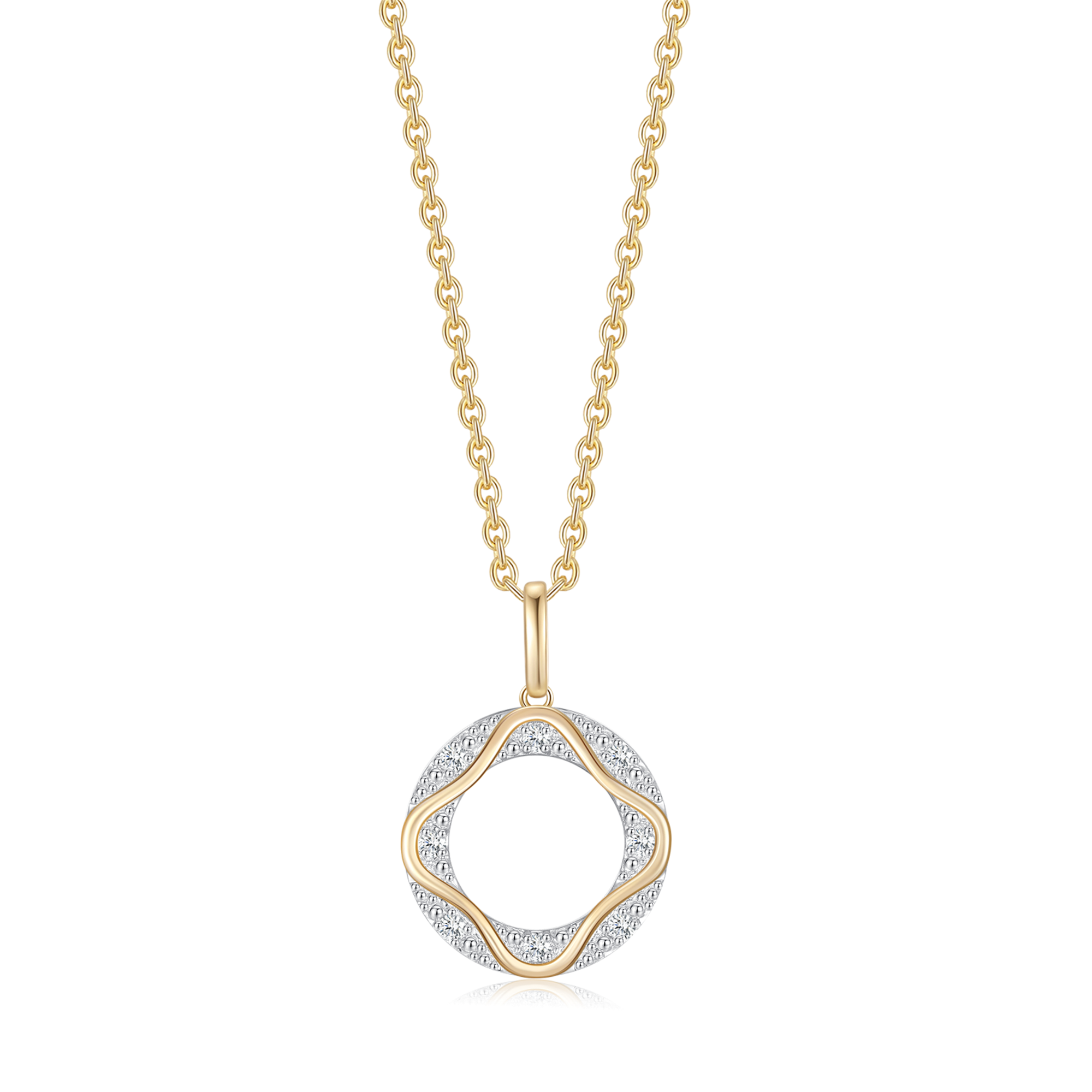 14 kt. guld halskæde cirkel med mønster og brillanter.