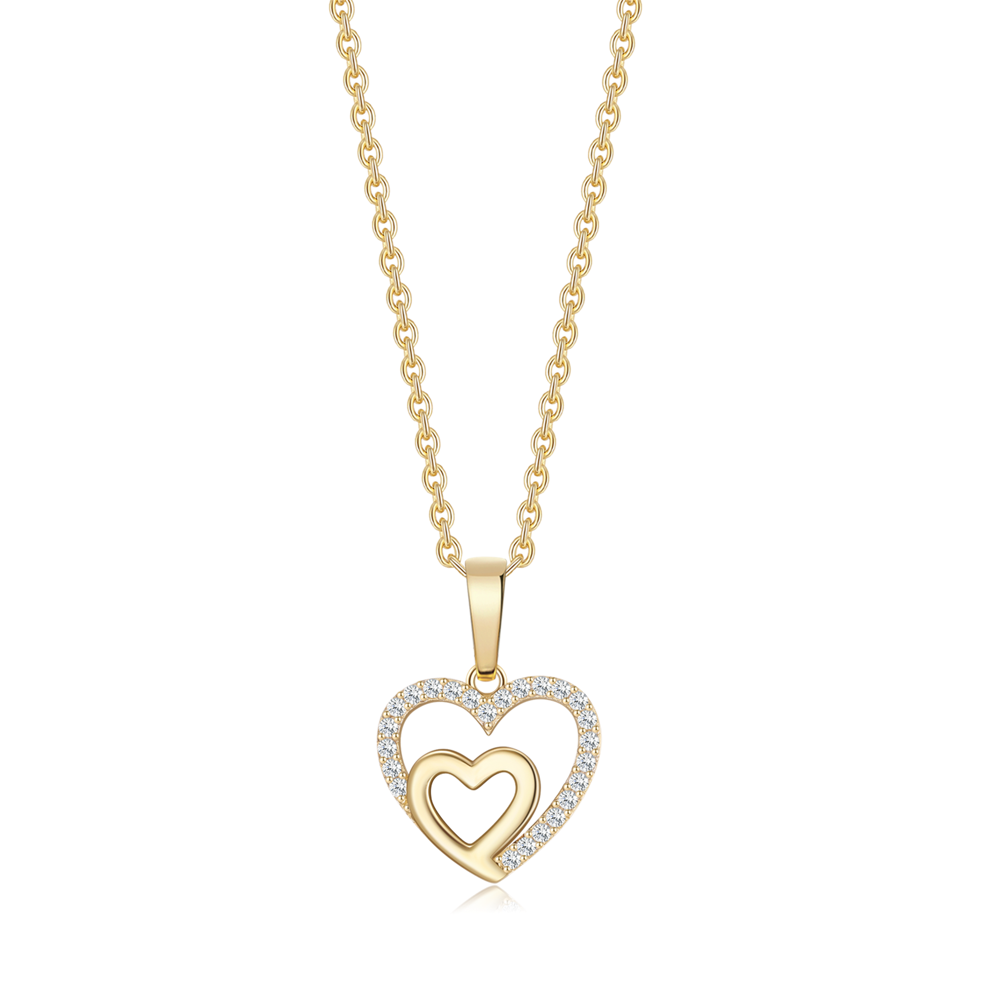8 kt. guld vedhæng dobbelt hjerte med syntetiske cubic zirconia.