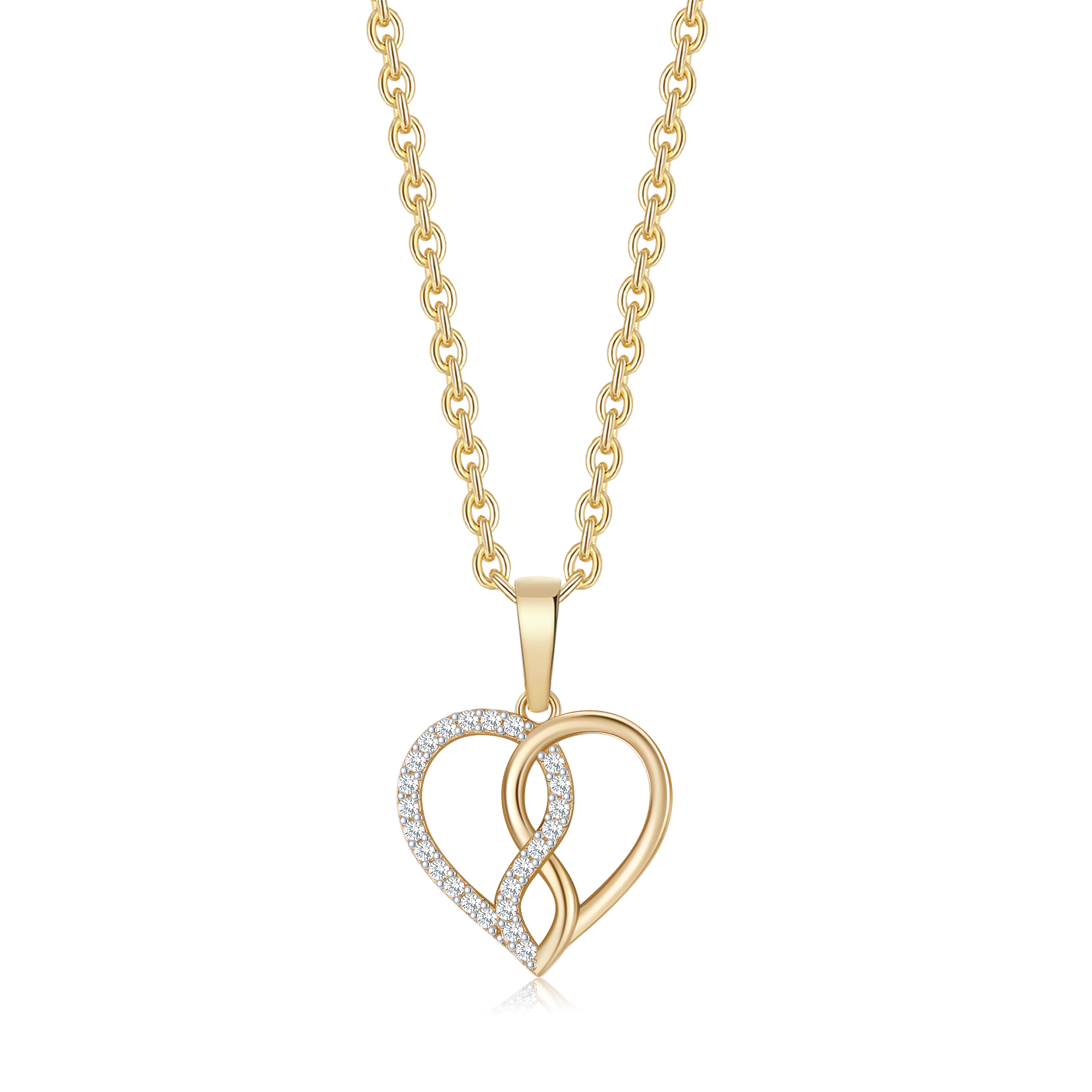 14 kt. guld vedhæng hjerte med syntetiske cubic zirconia og evighedstegn i midten.