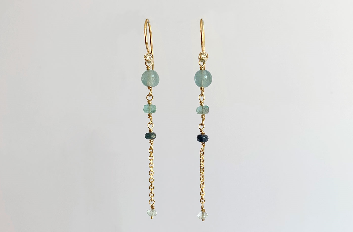 Guld ørehænger, aquamarin - Horizon