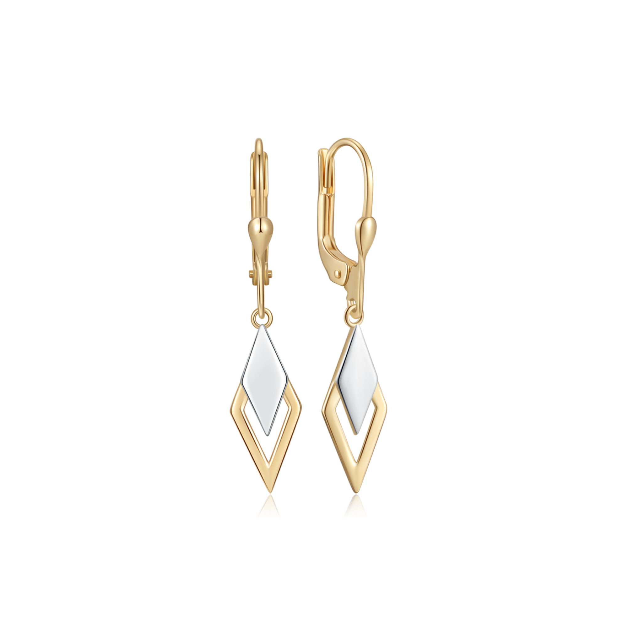 14 kt. guld ørehænger trekanter med hvid og rød guld.