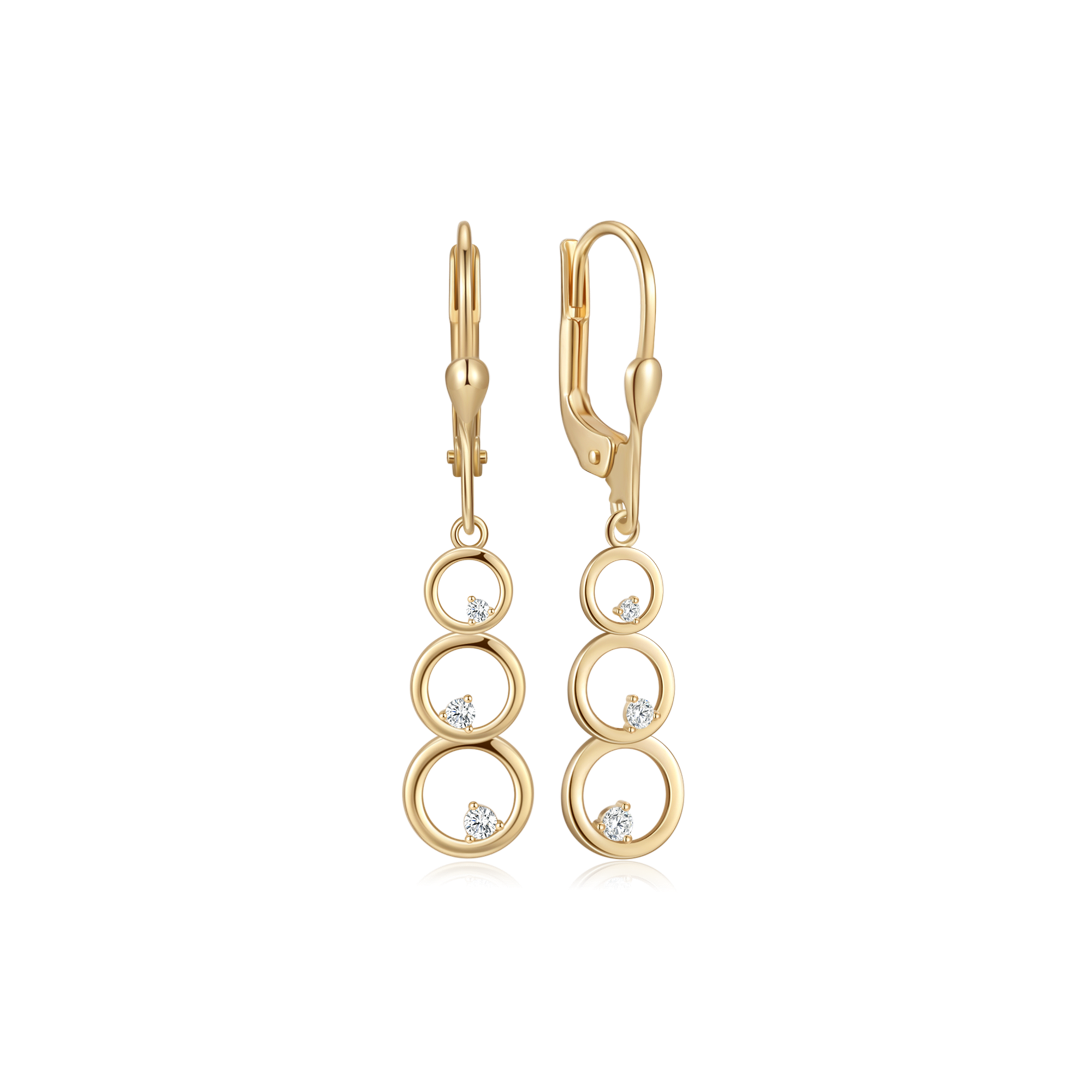 14 kt. guld ørehænger 3 forskellige cirkel med syntetisk cubic zirconia.