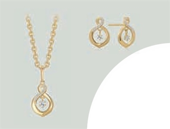 8 kt. guld ørestikker dråbe med en syntetisk cubic zirconia.