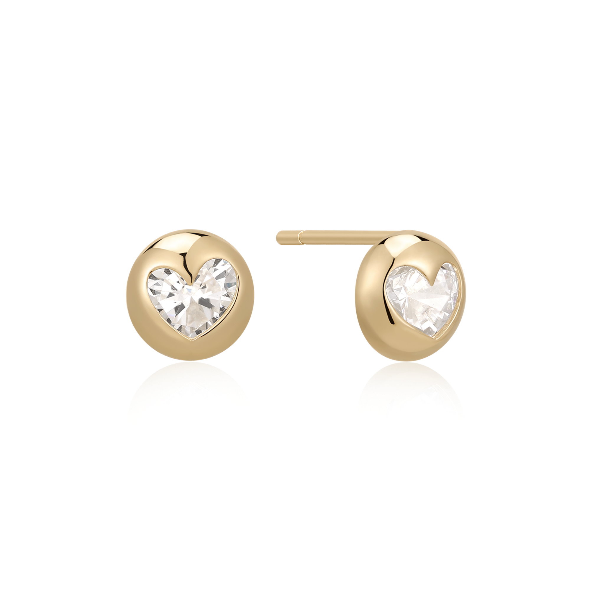 8 kt. guld ørestikker hjerte i halv kugle med en syntetisk cubic zirconia.