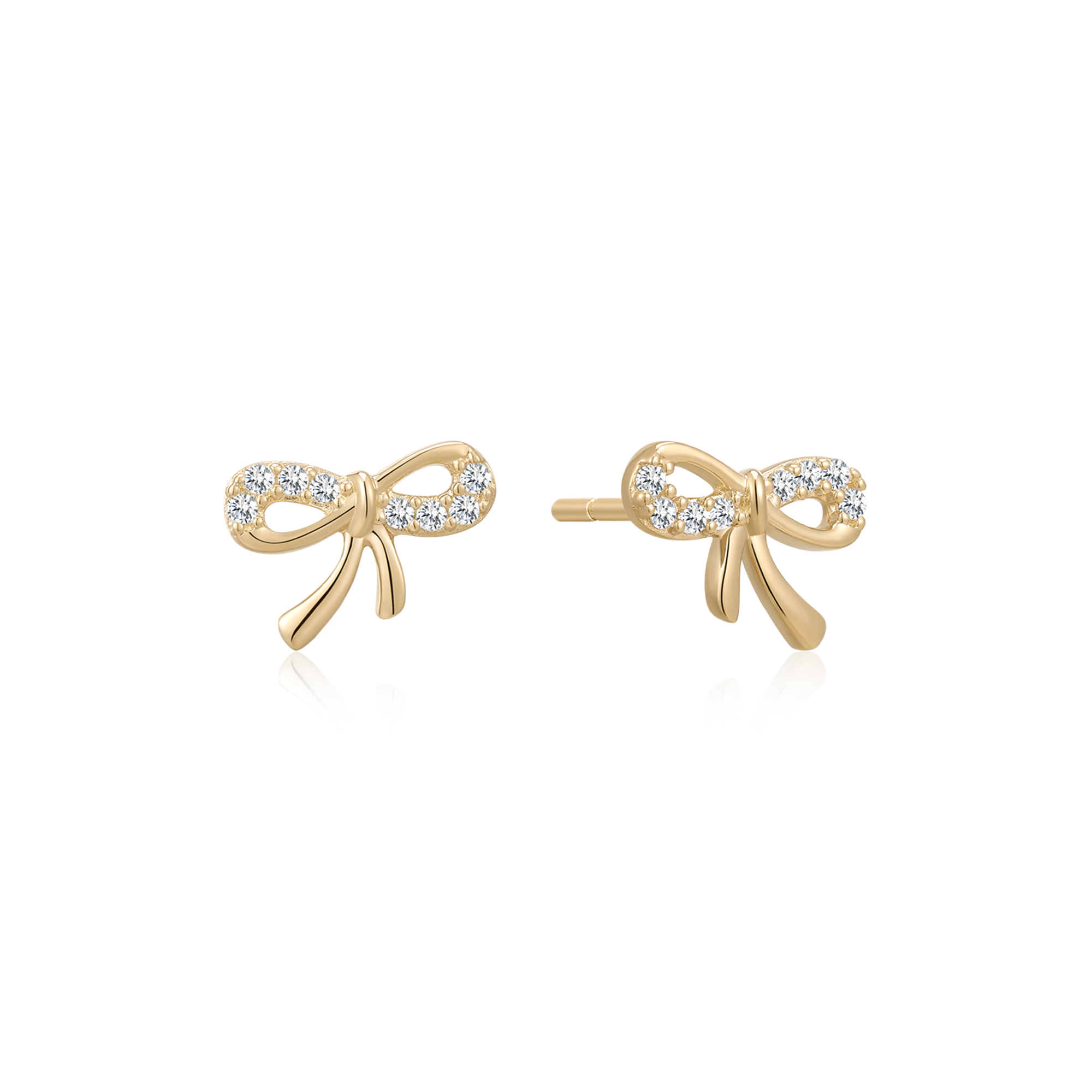 8 kt. guld ørestikker sløjfe med syntetiske cubic zirconia.