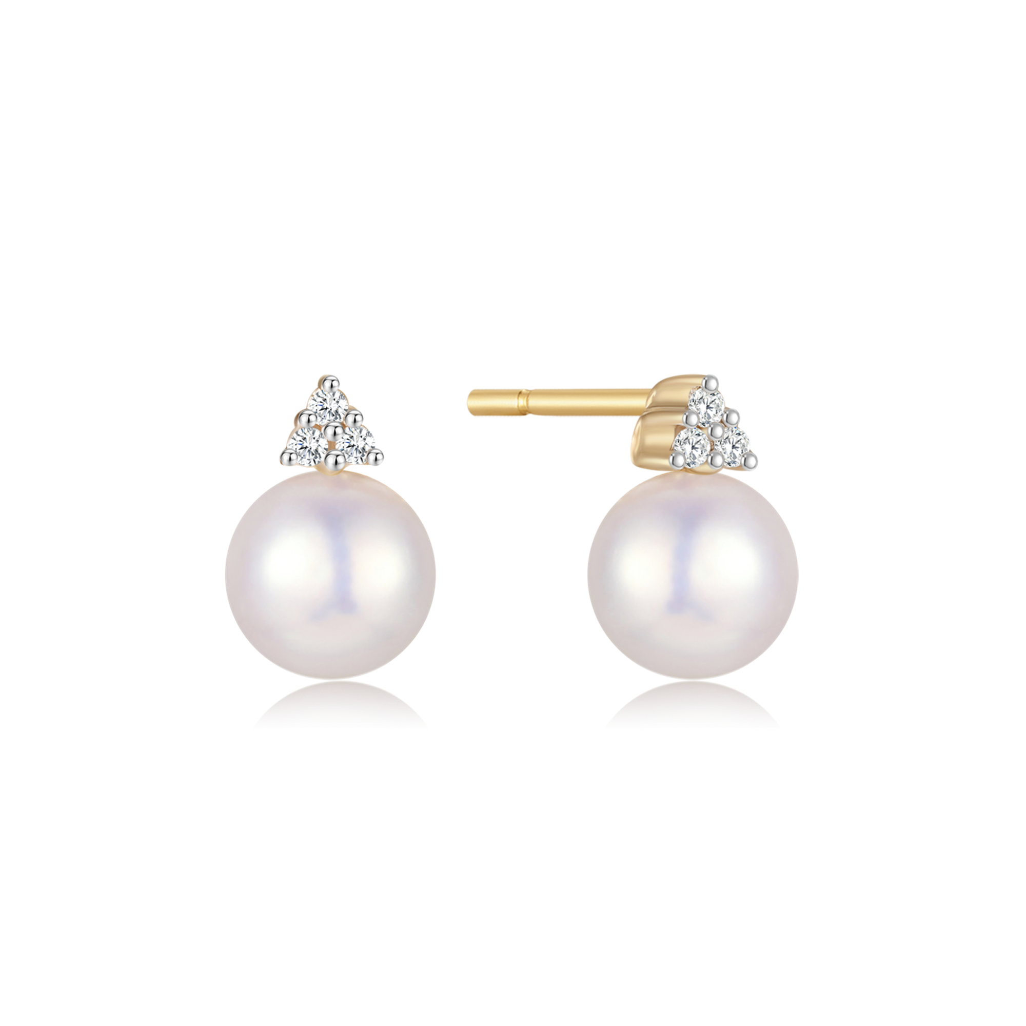 14 kt. guld ørestikke ferskvandsperle med en syntetisk cubic zirconia på toppen..
