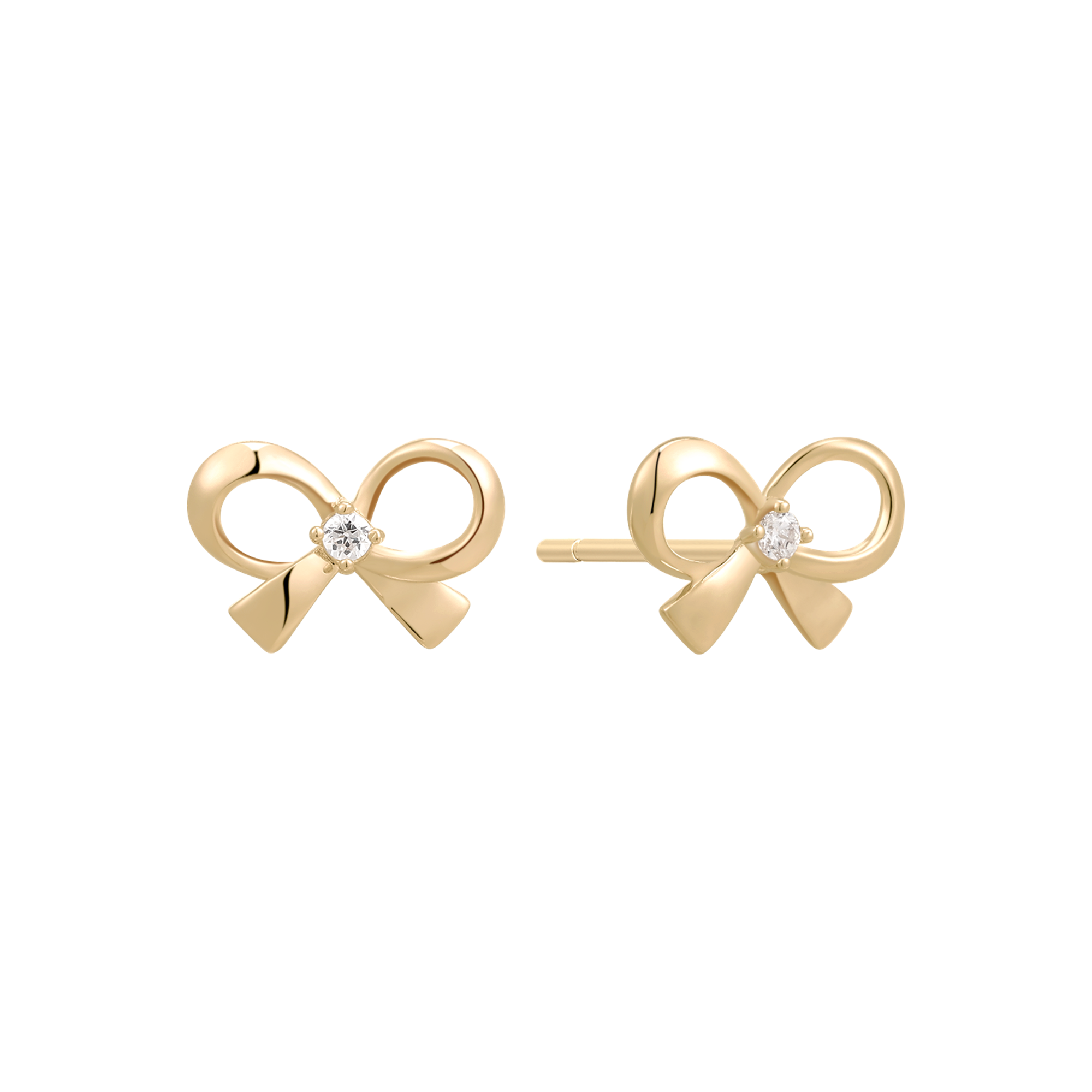 14 kt. guld ørestikker sløjfe med en syntetisk cubic zirconia i midten.