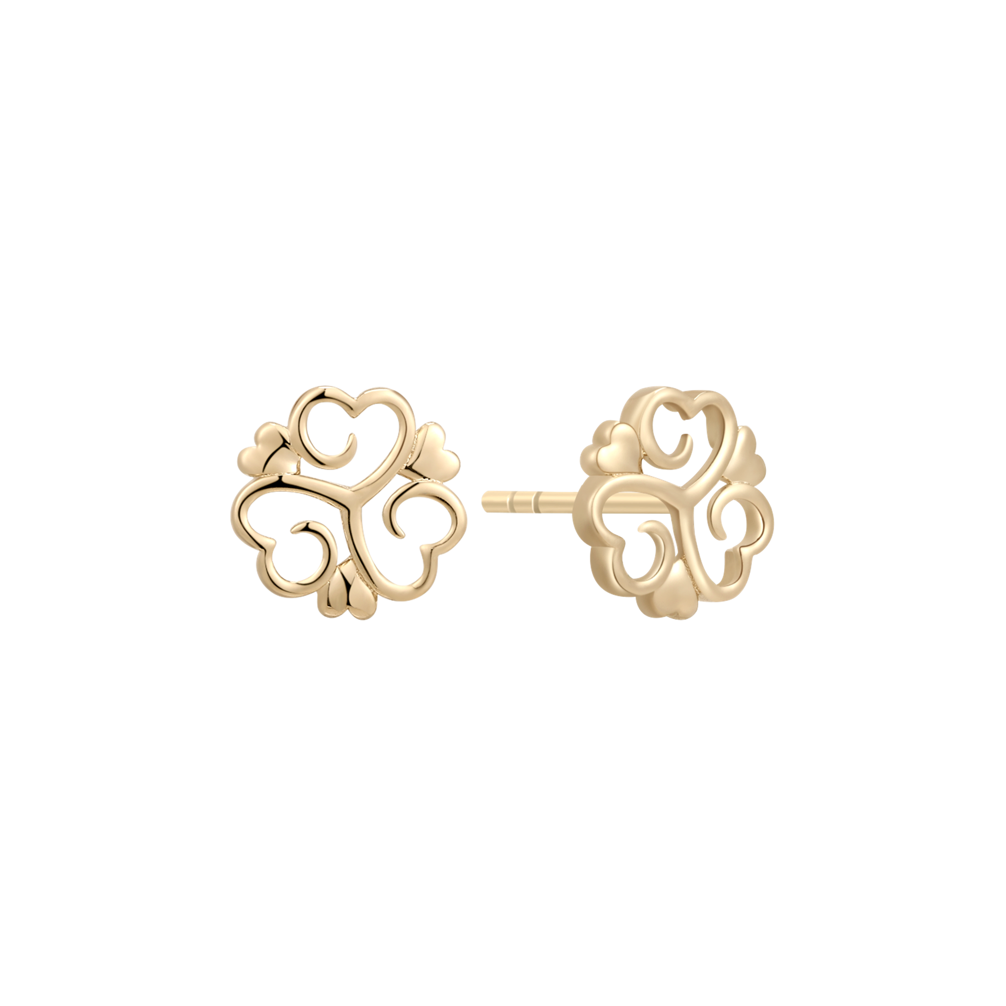 8 kt. guld ørestikker blomst af 4 hjerter. "Flowers of heart"