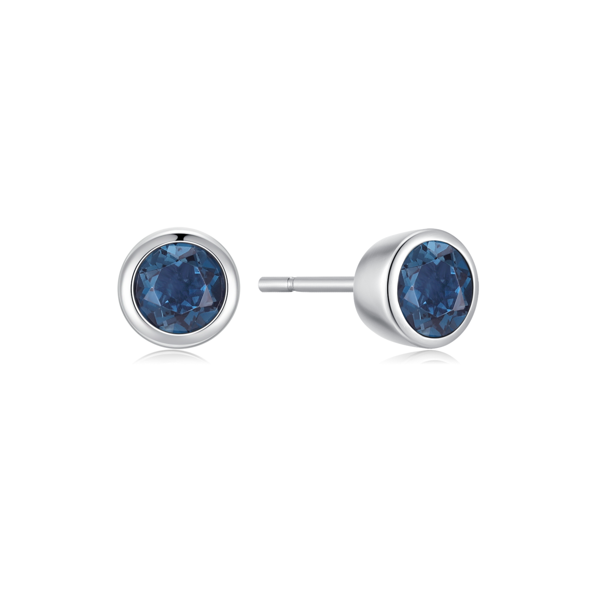 14 kt. hvidguld ørestikke cirkel med blå topas.