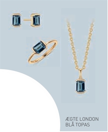 14 kt. guld ring aflang firkant med london blå topas. Mål: 6 x 5 mm.