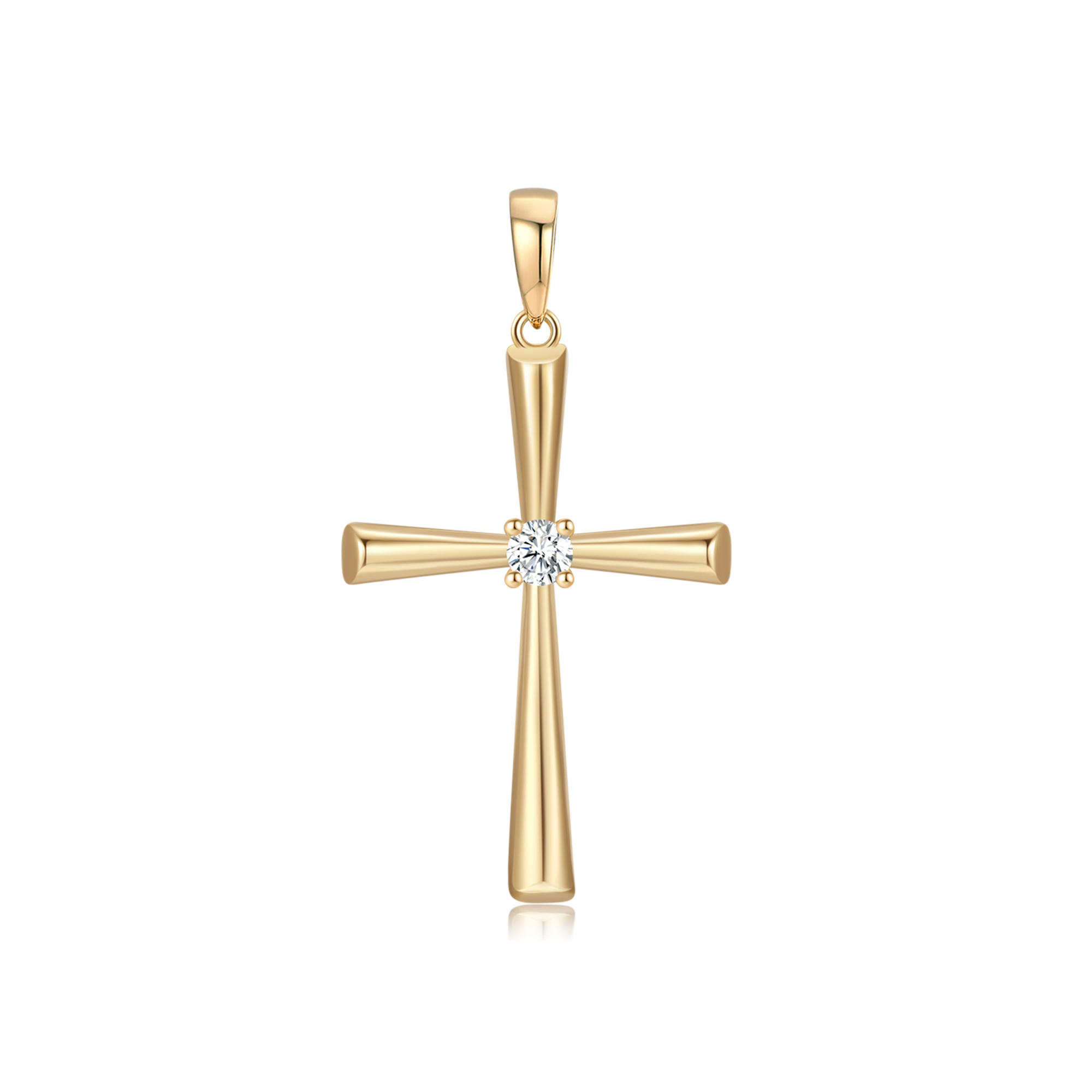 8 kt. guld vedhæng kors med syntetiske cubic zirconia i midten.