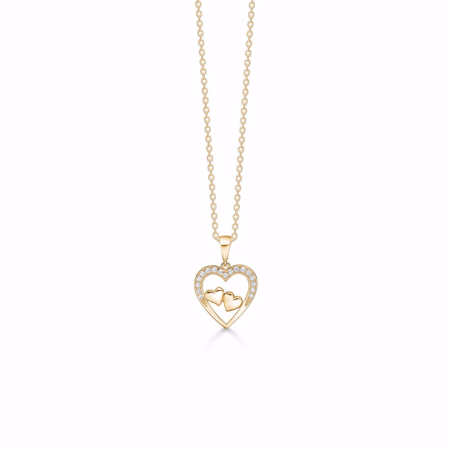 Guldvedhæng - 8kt. dobbelt hjerte m kæde