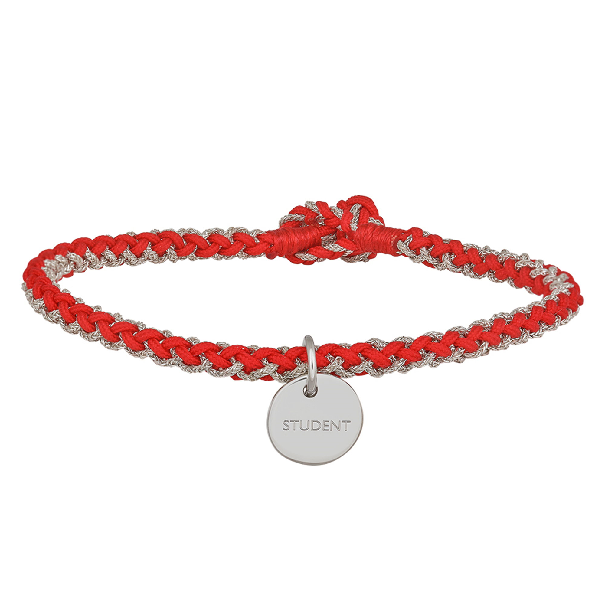Håndflettet armbånd 16,5cm STUDENT rød sølv , fra Nordahl