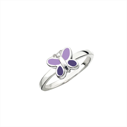 Søt ring med sommerfugl på, med lilla emalje