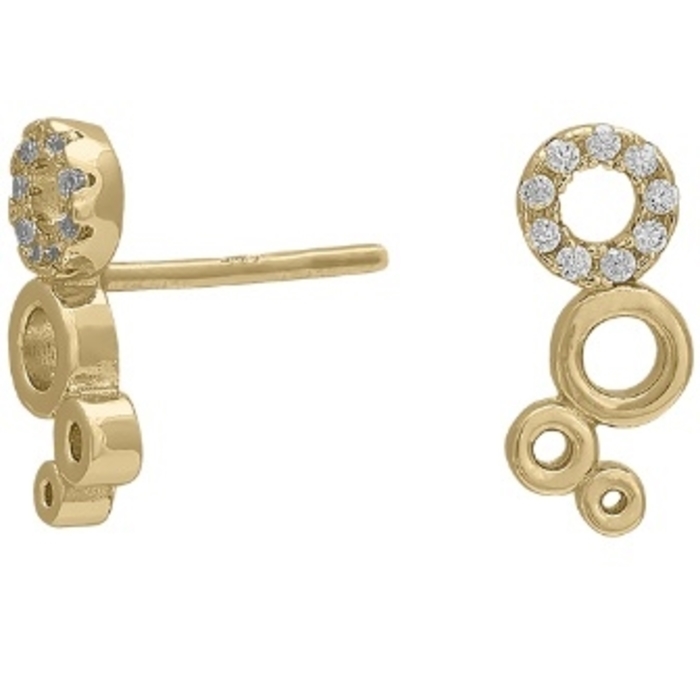 Vakre øredobber med 4 sirkler i forskjellige størrelser, den største vakkert besatt med glitrende zirkonia, 12 mm