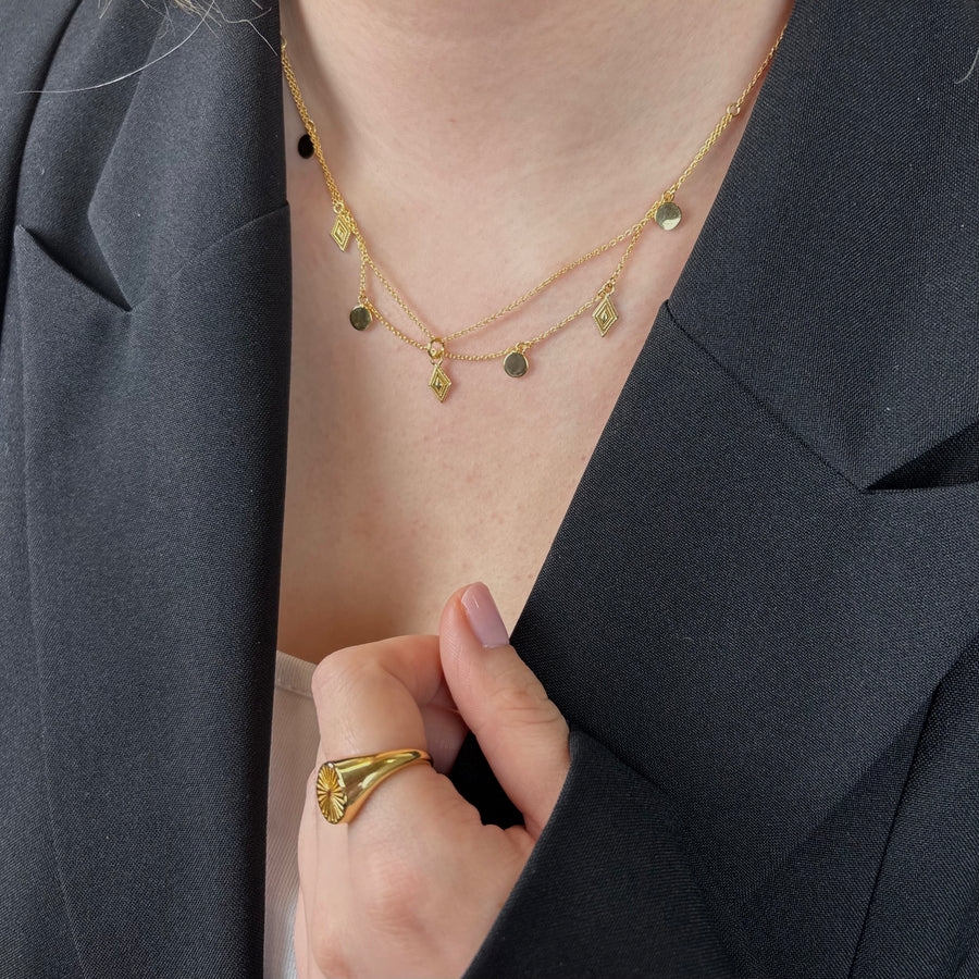 Søtt og leken dobbeltkjede i gullbelagt sølv med sjarm