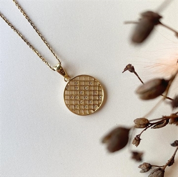 Vakkert anheng i forgylt sølv med maskemønster og glitrende zirkonia