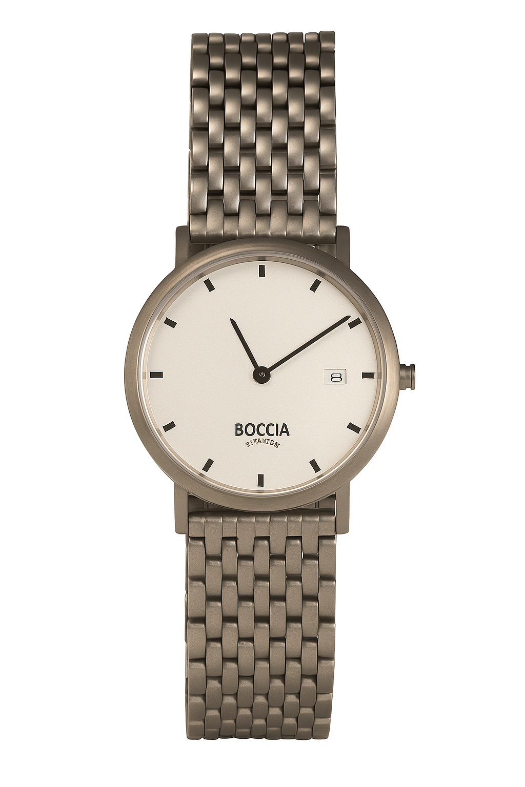 En Rustfri stål Dame klokke fra Boccia med Perlemor urskive og Quartz urverk
