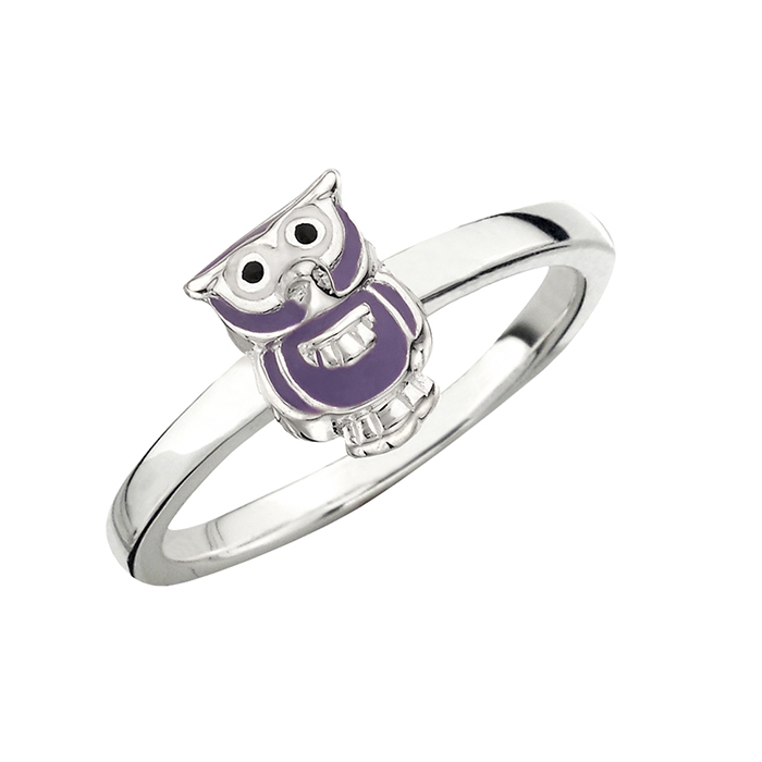 Morsom liten lilla uglefingerring, 8,5 x 6 mm