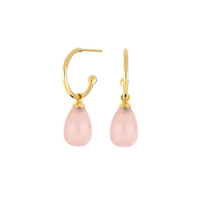 Kreoler i forgylt sterlingsølv med dråpeformet rosekvarts, H: 12 mm, Ø: 15 mm, L: 32 cm