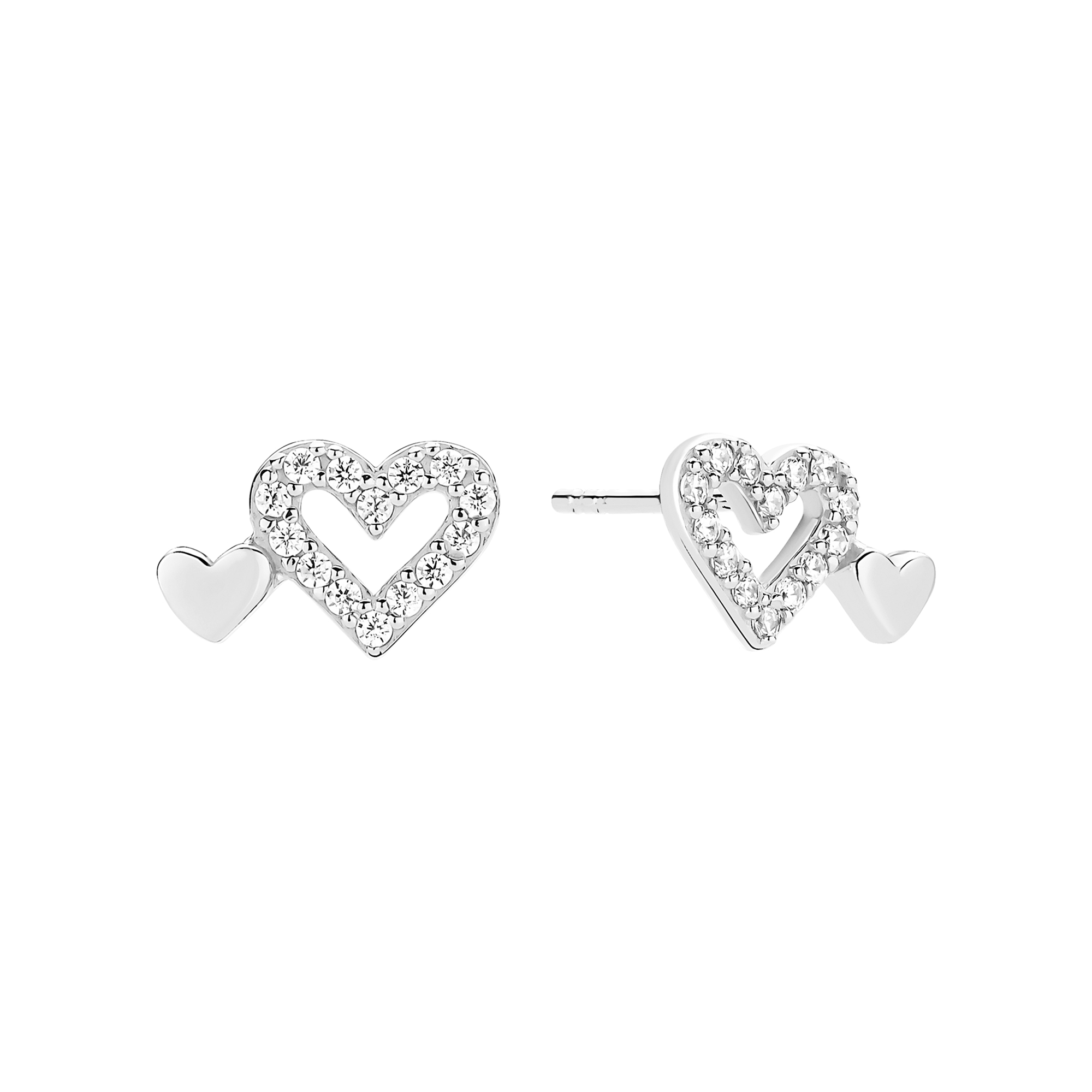 Ørestik dobbelt hjerte zirkonia sterling sølv fra Lund Copenhagen