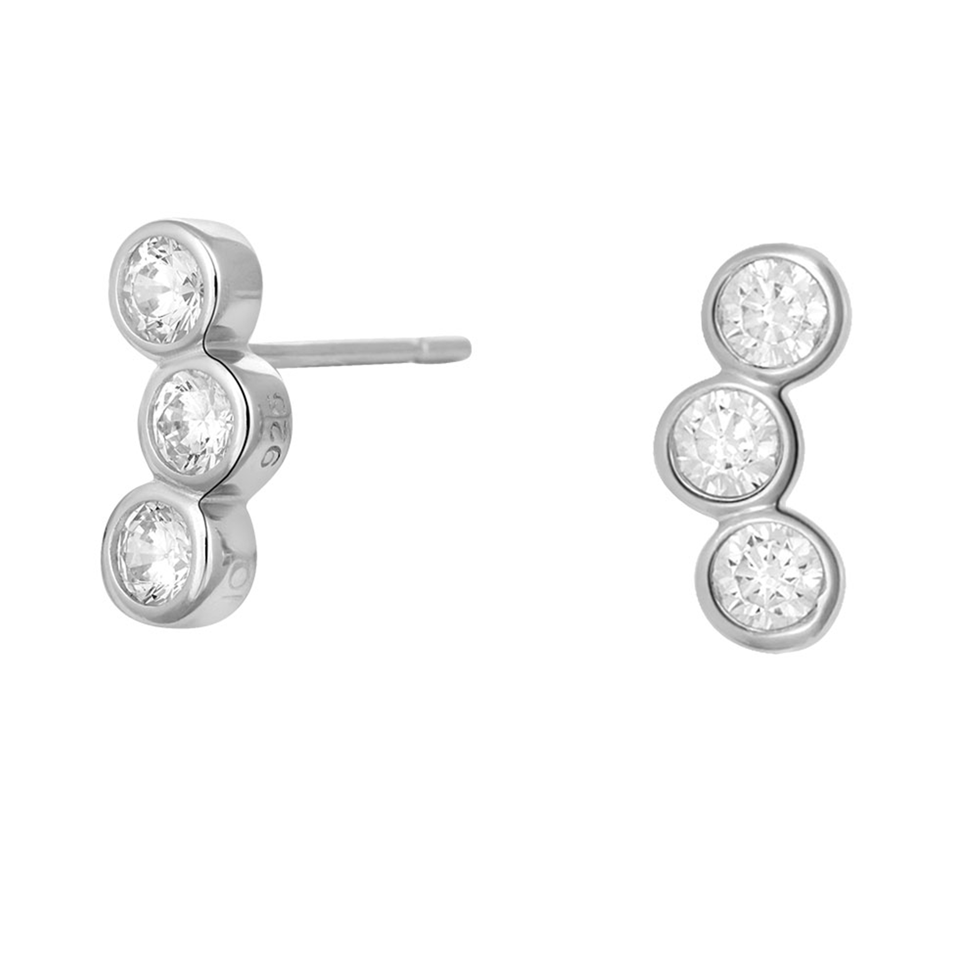 Klassiske og moderne øreringe. Ørestikkerne i rhodineret sølv fra vores Cristin Nor serie er et enkelt med stadig moderne tilføjelse til et hvert outfit. De tre rørfattede kubisk zirkonia er sat i en svag bue, der gør smykket specielt uden, at det m
