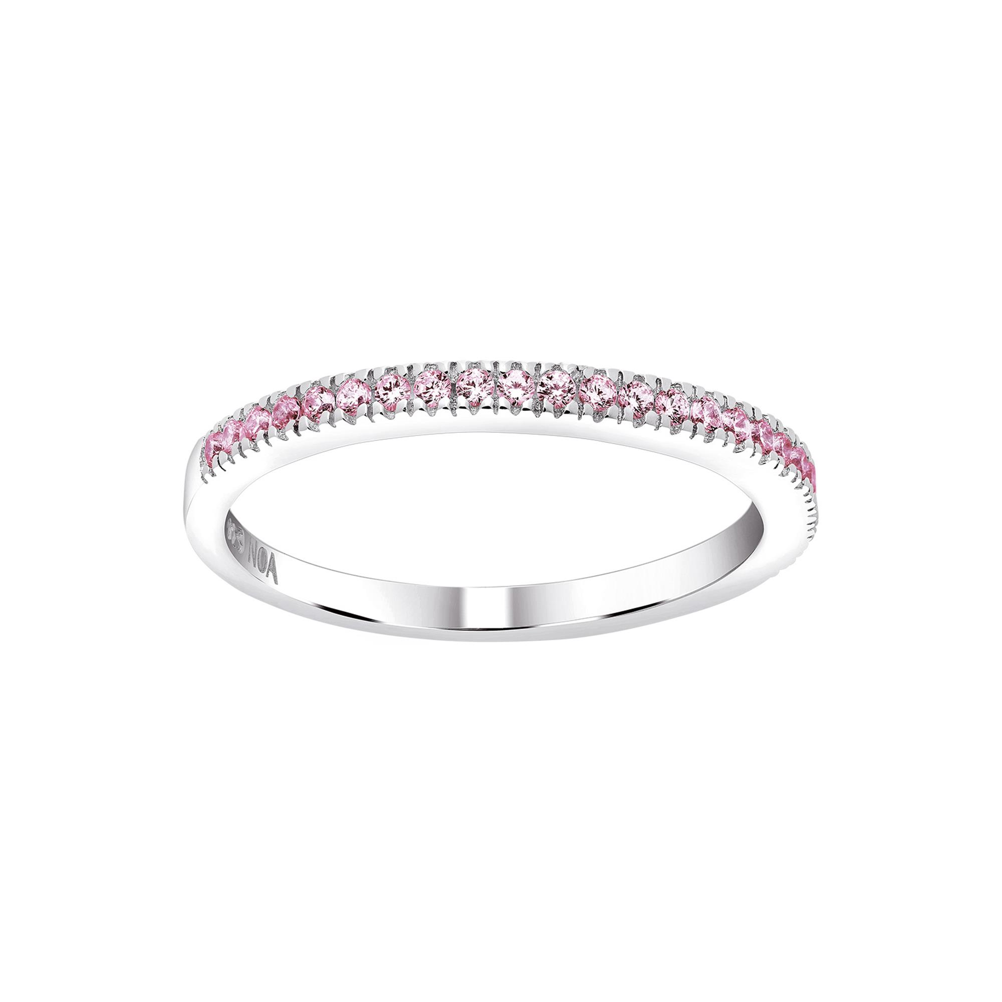 Klassisk og stilren ring i rhodineret sølv med kubisk zirkonia i lyserød, som passer så fint sammen med ethvert outfit. De kubiske zirkonia stråler elegant i lyset og tilfører lidt farve. Ringen er rigtig smuk alene, men får også ekstra fokus ved at sa