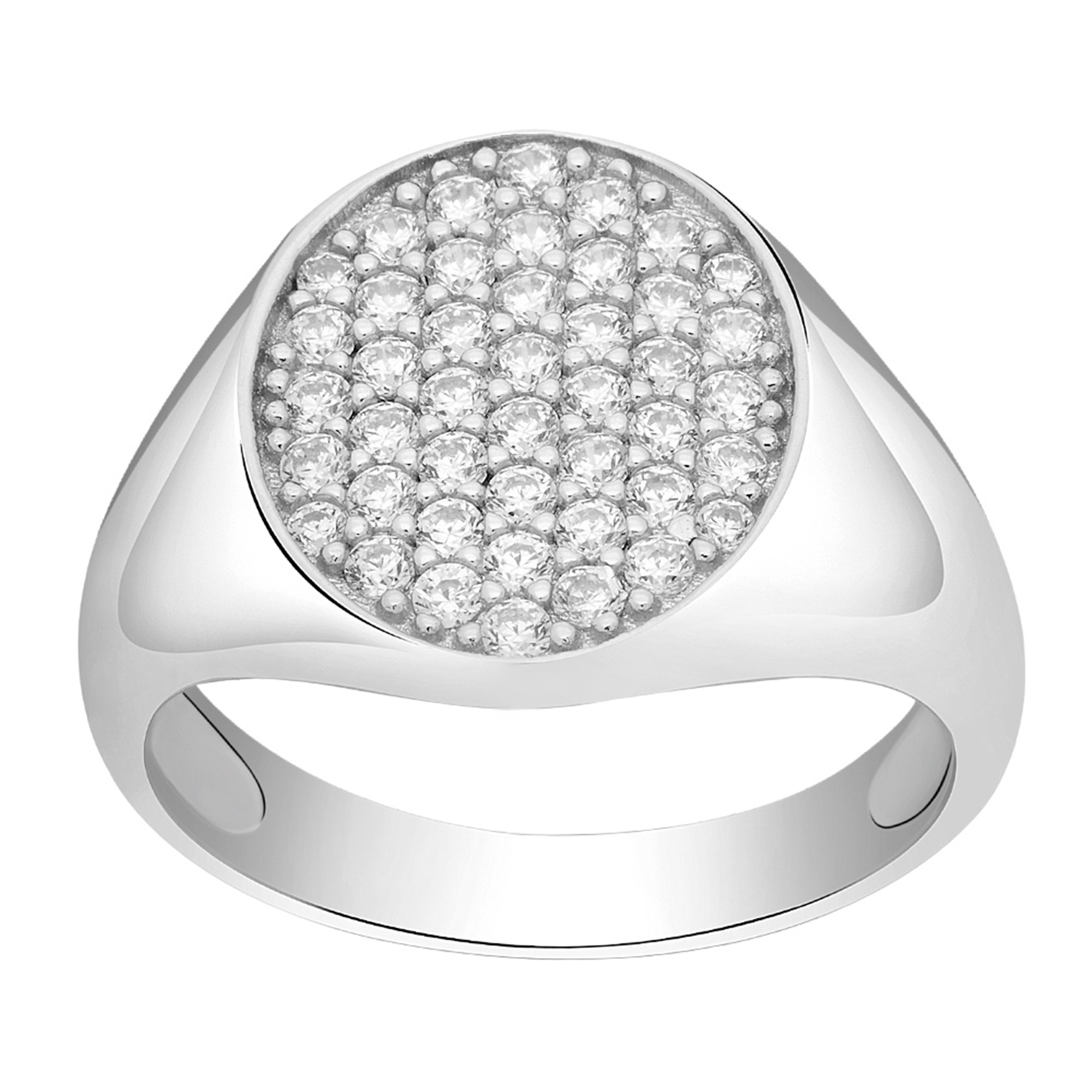 Denne unikke, moderigtige ring, fra vores Aya serie, er en fantastisk sammensmeltning af det feminine- og maskuline udtryk. Den solide rhodineret sølvring måler 14 gange 12 mm, og er besat med udsøgte zirkonia sten, hvilket skaber en tiltalende balance