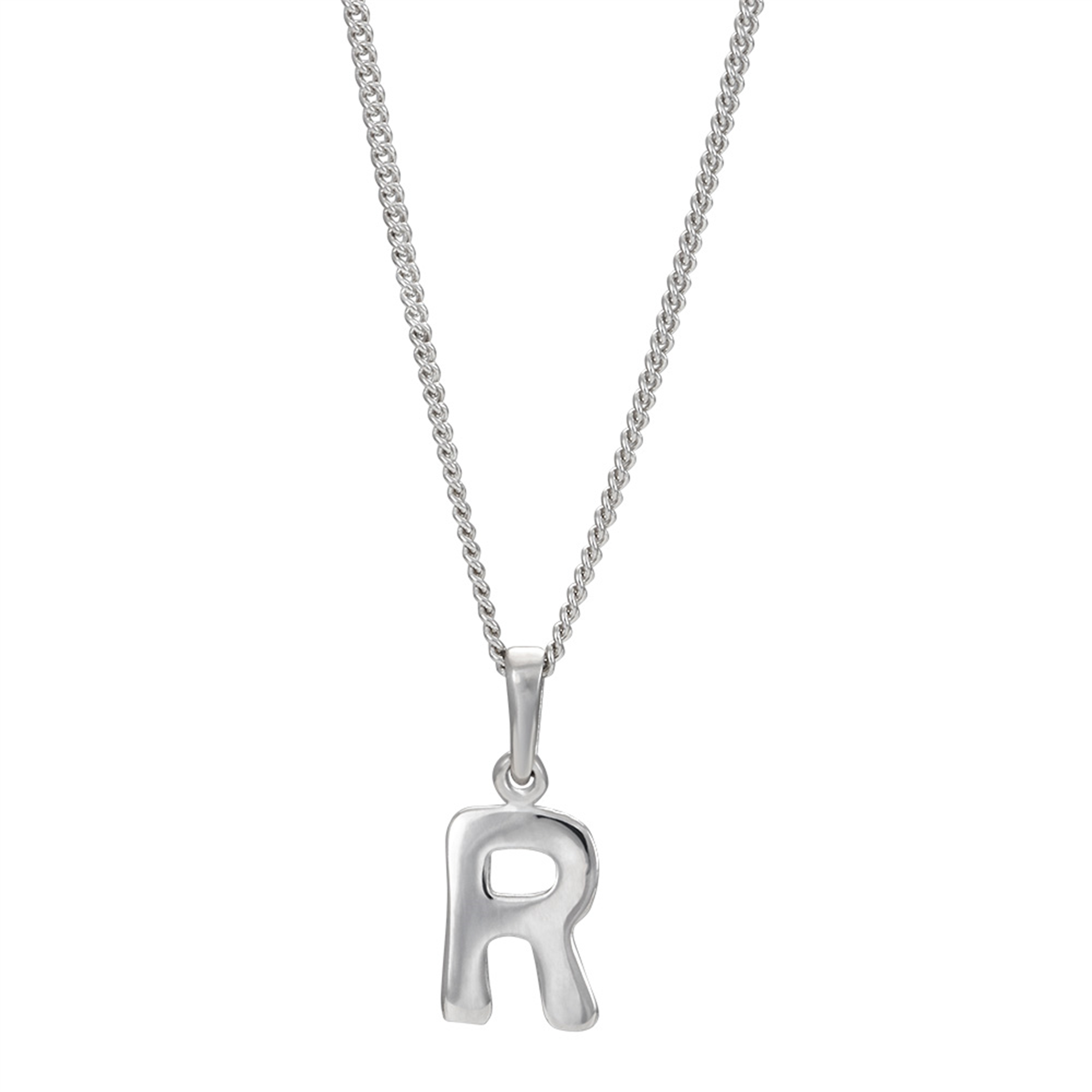 Rhod. sølvbogstav R 12mm inkl. kæde , fra Siersbøl