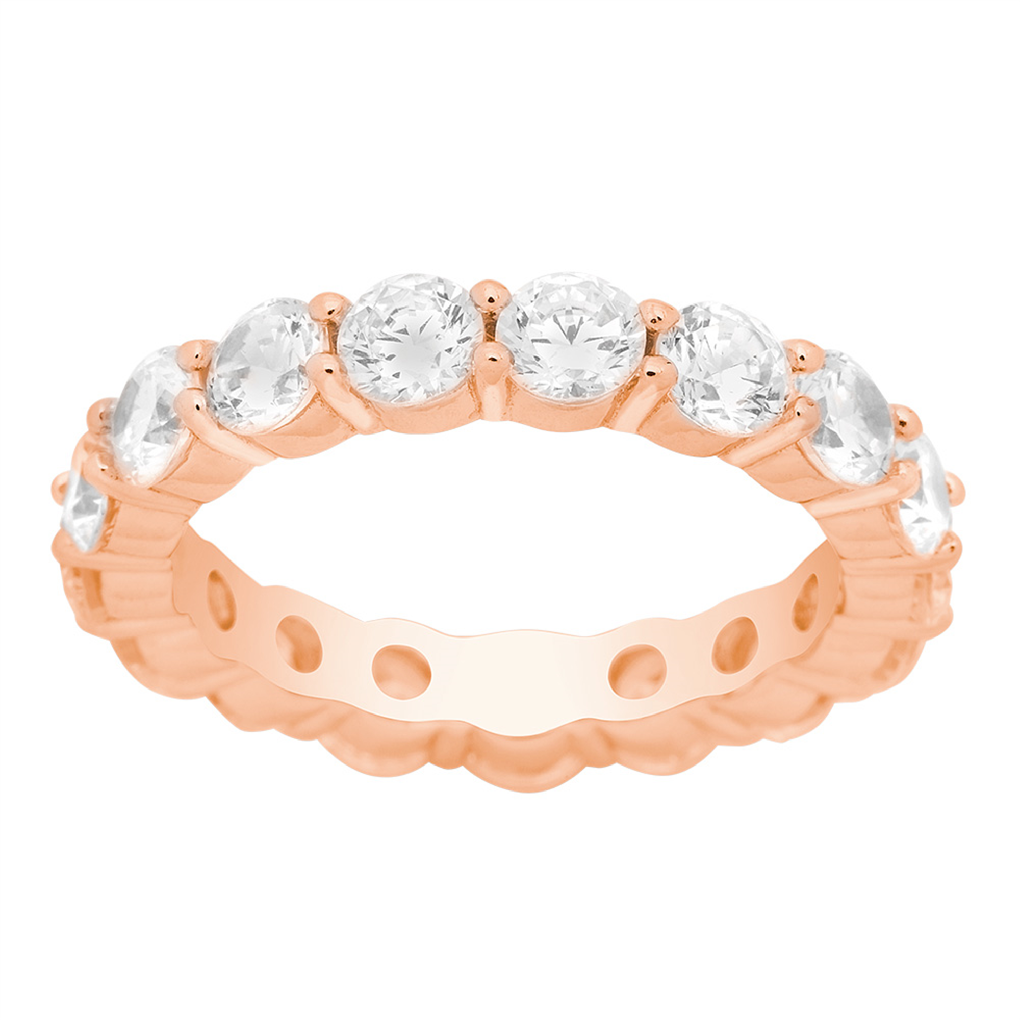 Vores Alison ringe udstråler en nærmest overdådig skønhed. Den rosaforgyldte sølvring er sammensat af 4 mm strålende zirkonia sten, som bidrager til ringens funklende udtryk. Ringen er en sand fryd for øjet, og kan uden tvivl pifte et hvert look op. De