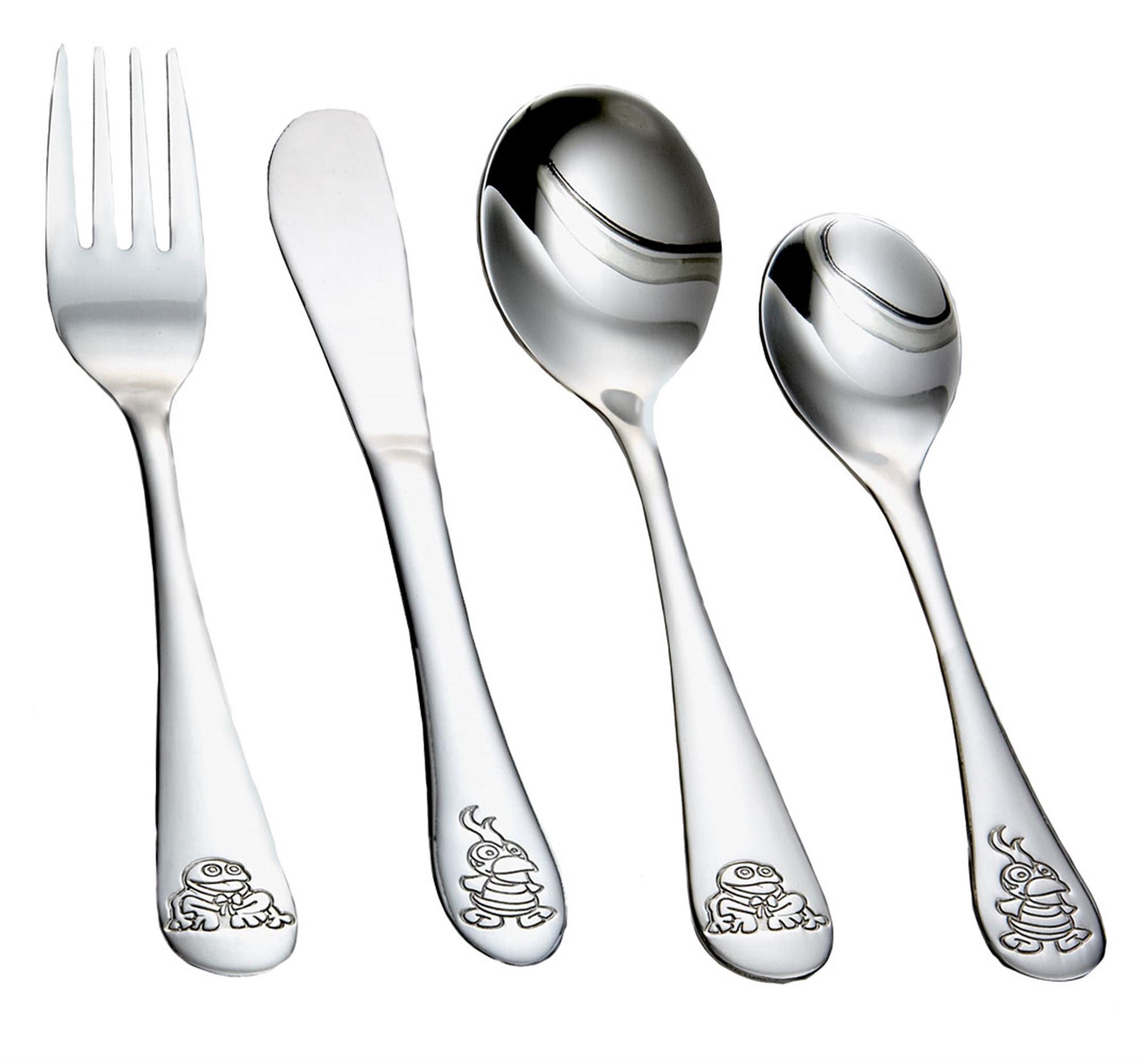 Vildt flot og skønt børnebestik i rustfrit stål med motiver med det søde makkerpar Kaj & Andrea. Sættet indeholder kniv, gaffel, spiseske og teske. Generelt er børnebestik en fin og meget populær gave til børn, og er oplagt som fødselsdagsgave, dåb