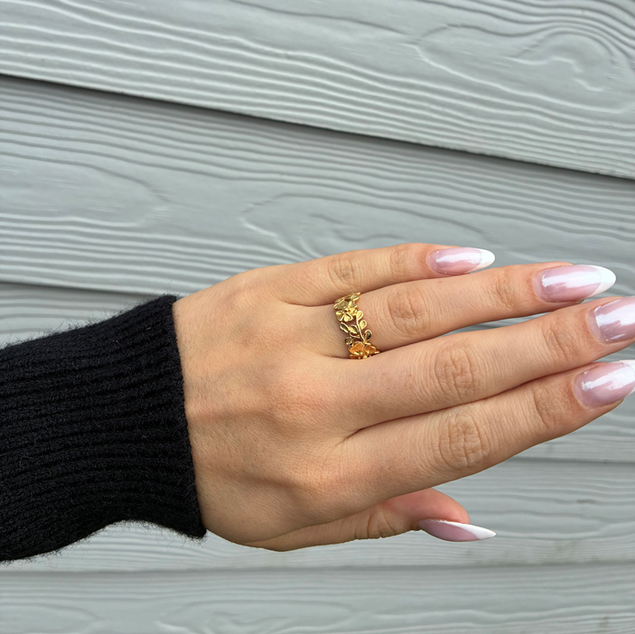 Siersbøl vakre 18 kt forgylte sølvring med fine blomster.