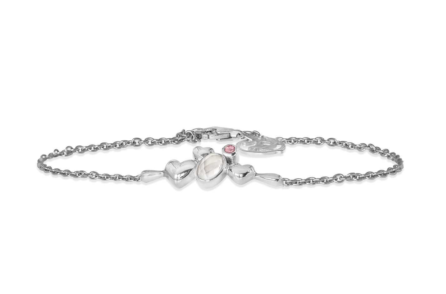6x4mm hvid månesten, 2mm pink turmalin