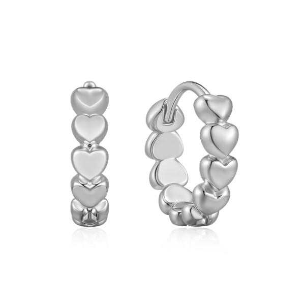 Sølv creoler rhodineret med hjerter.
