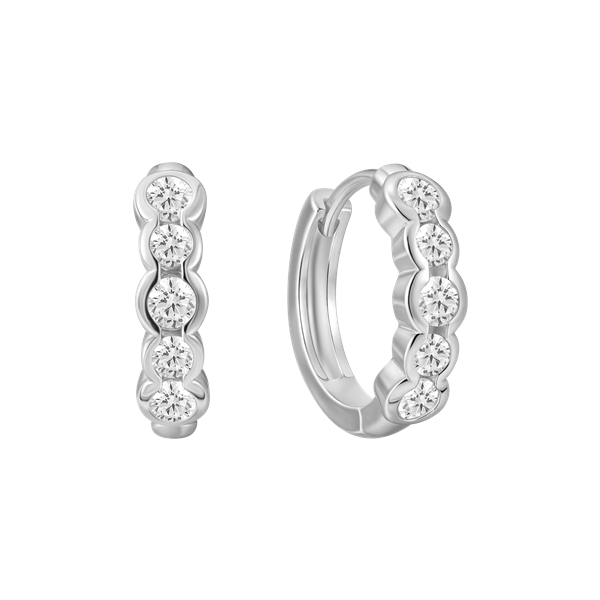 Sølv creoler rhodineret med syntetiske cubic zirconia i små cirkel.