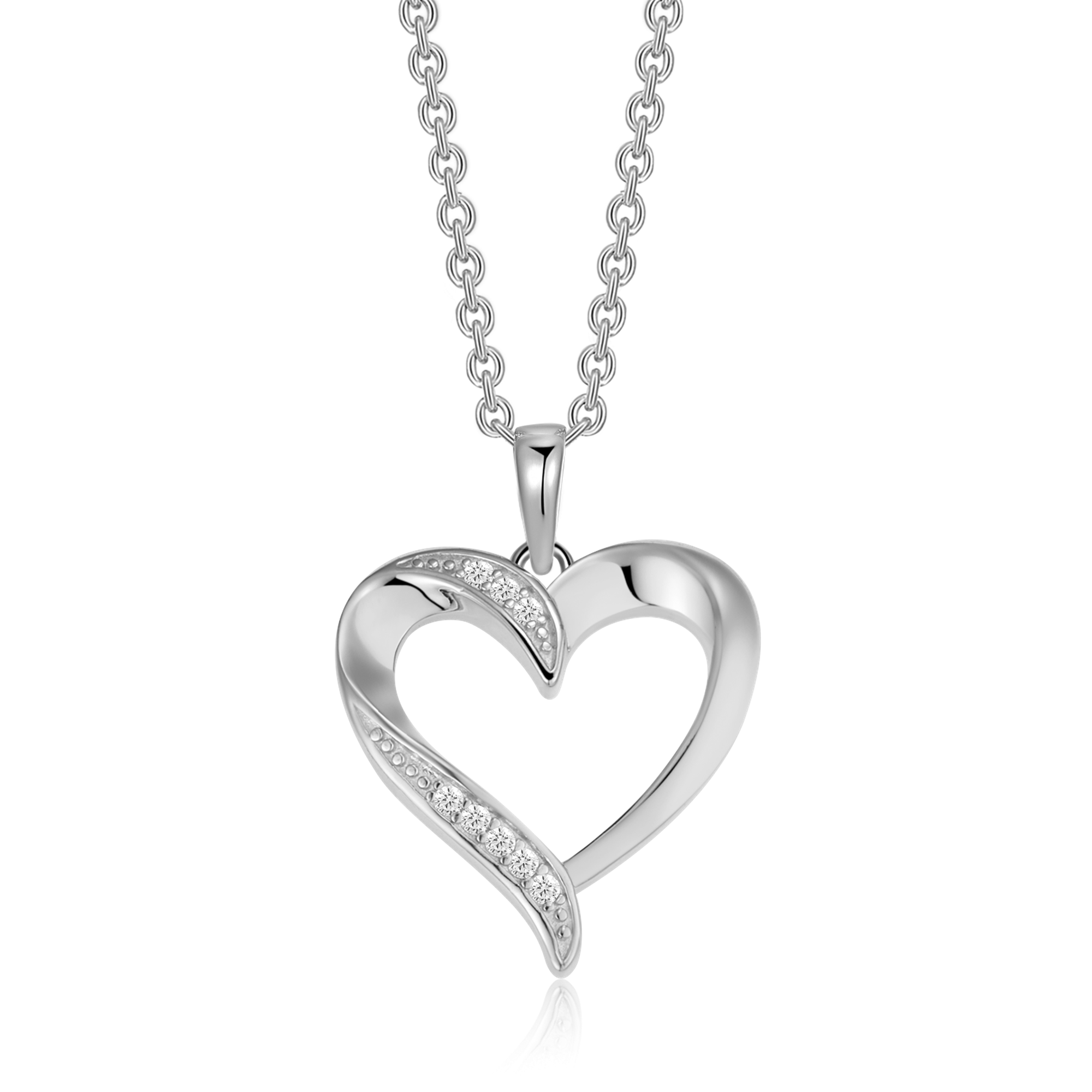 Sølv halskæde rhodineret hjerte med syntetiske cubic zirconia.