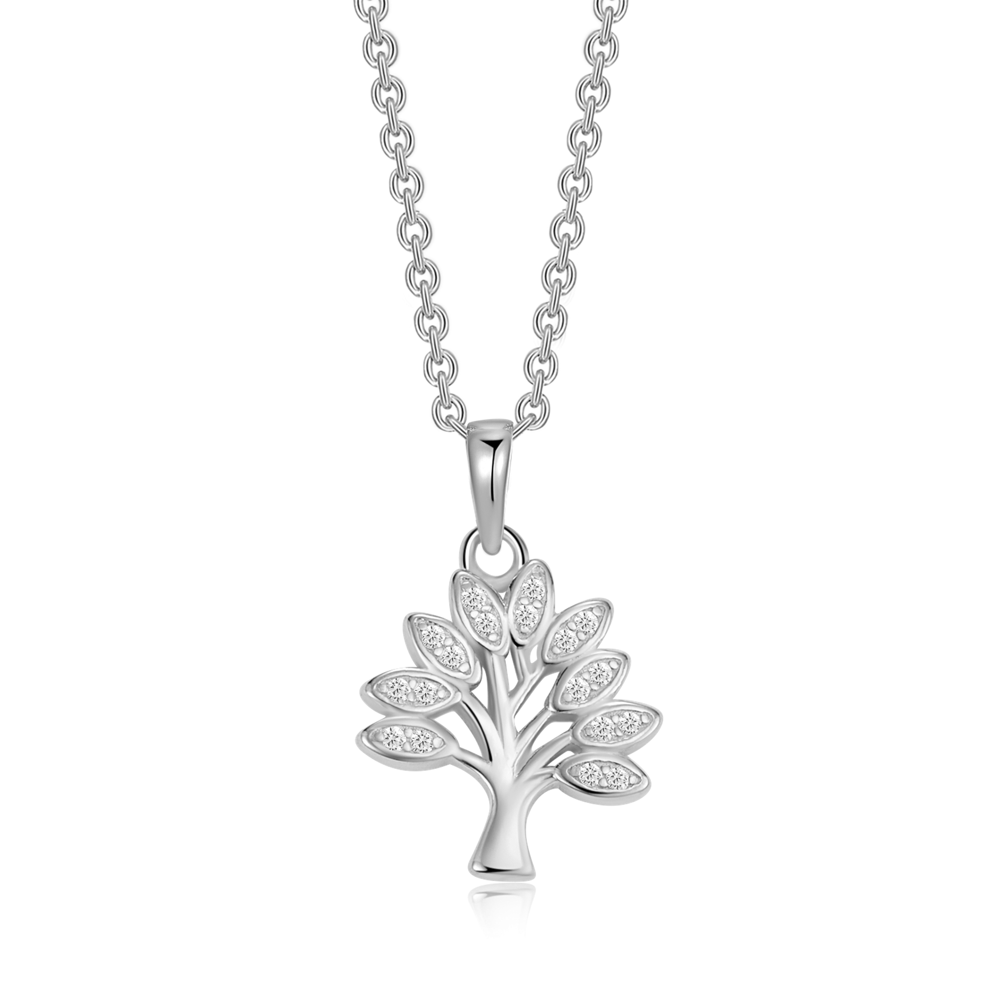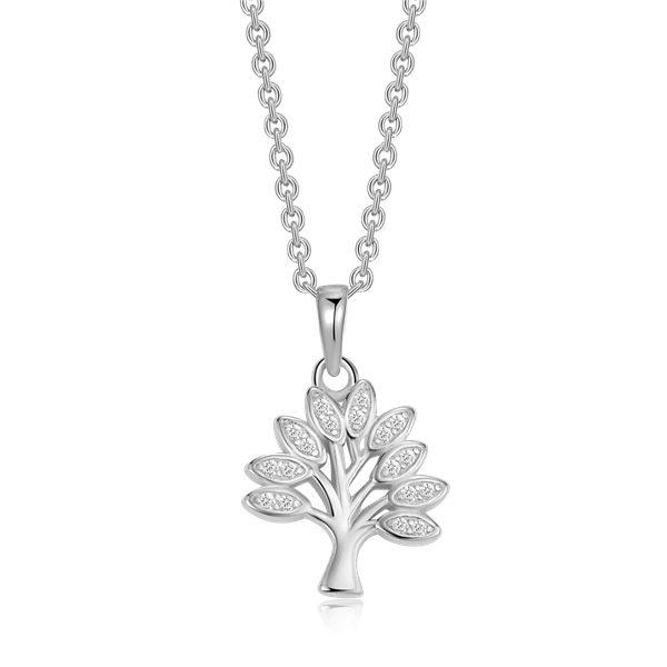Sølv halskæde rhodineret livets træ med syntetiske cubic zirconia.