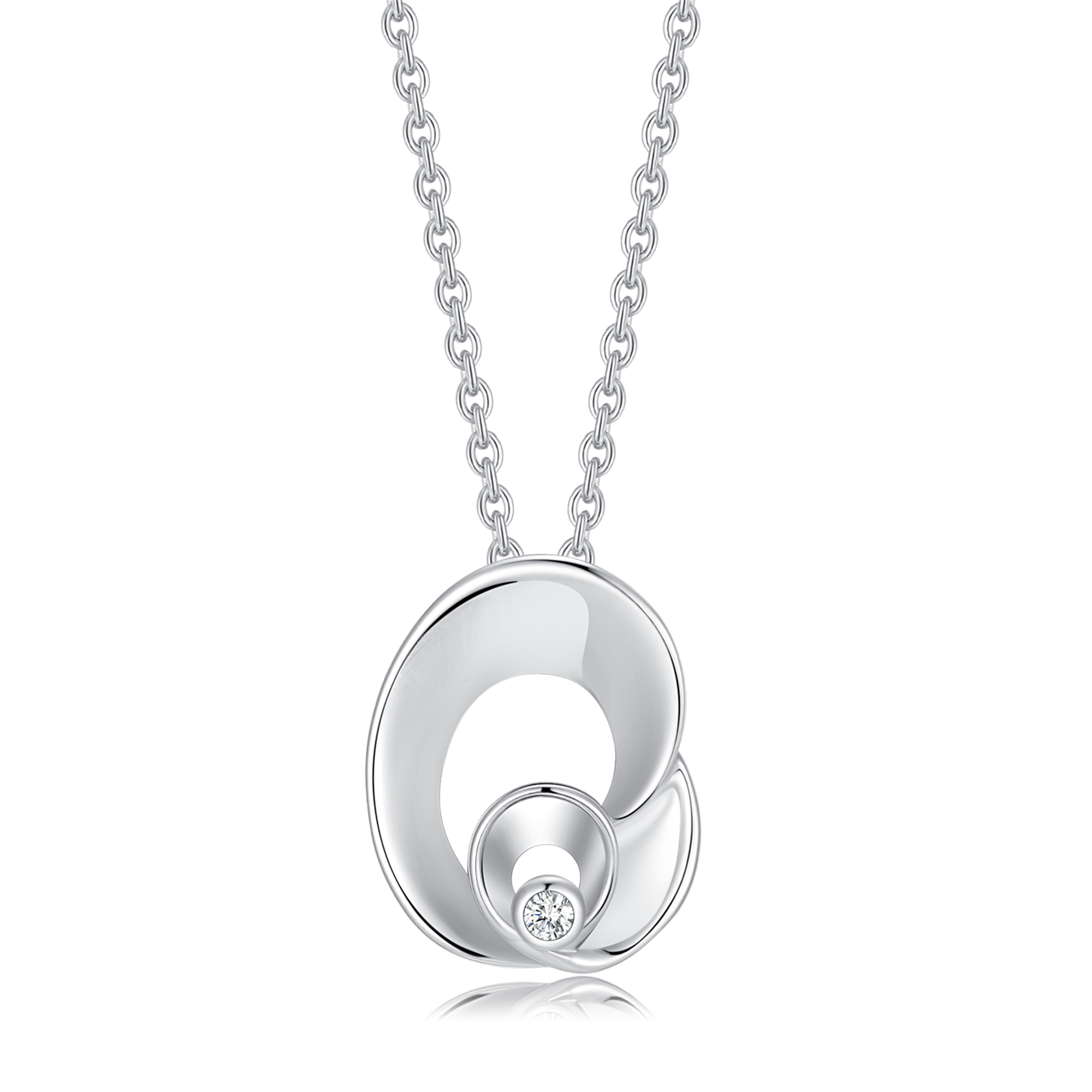 Sølv halskæde rhodineret dobbelt oval med en syntetisk cubic zirconia.